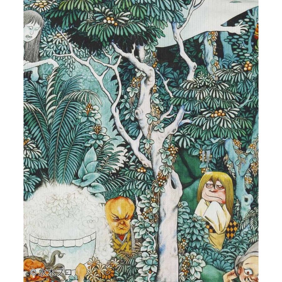 ──日本を代表する漫画家「水木しげる」が描く妖怪たちの世界。数多くの妖怪を描いてきた水木しげる作品の中で、妖怪たちの世界が色濃く描かれている作品をデザインに落とし込みました。刺し子のようなテクスチャ感のある生地を使ったアロハシャツ。男女問わずご着用いただけます。●ブラック:幻想●ブラウン:合戦●グリーン:妖怪たちの棲む森