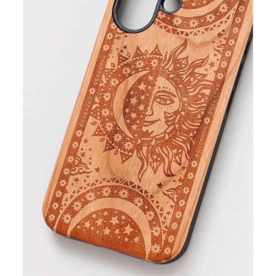 強度のあるウッドに彫刻された力強い個性的な柄がポイントのスマートフォンケース。素朴でナチュラルな風合いが魅力的。 対応機種:iPhone16