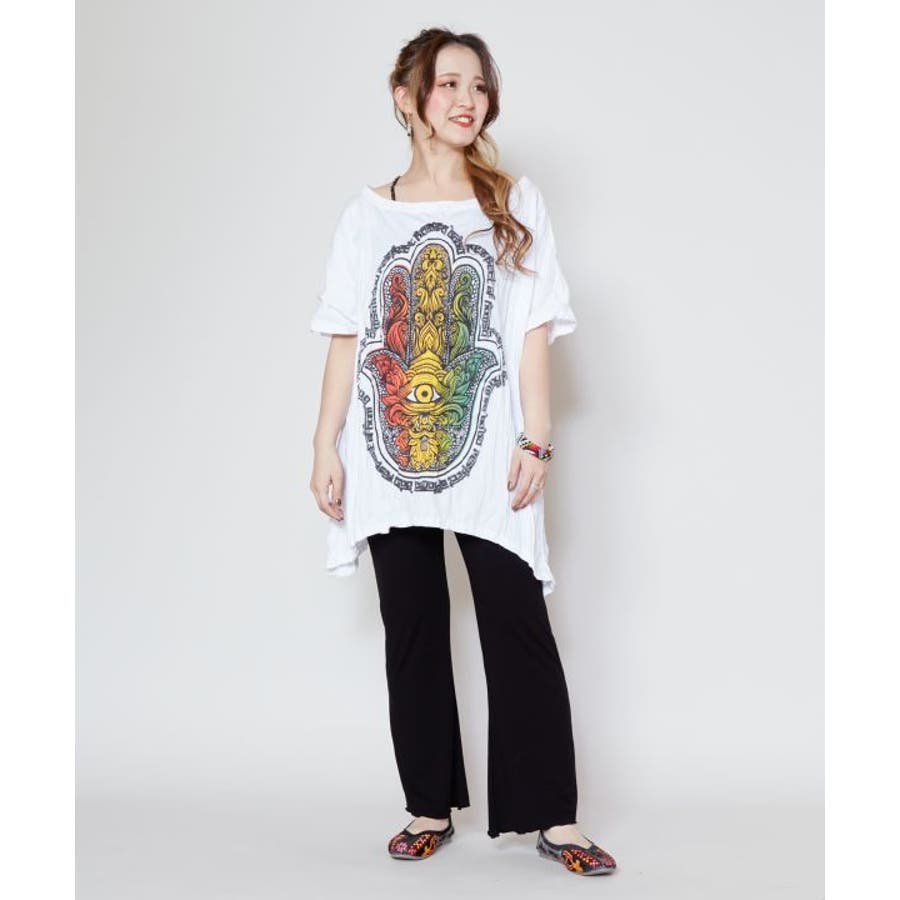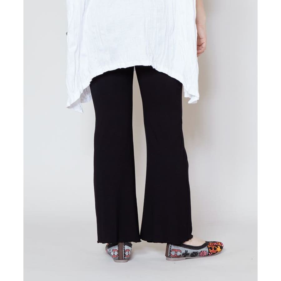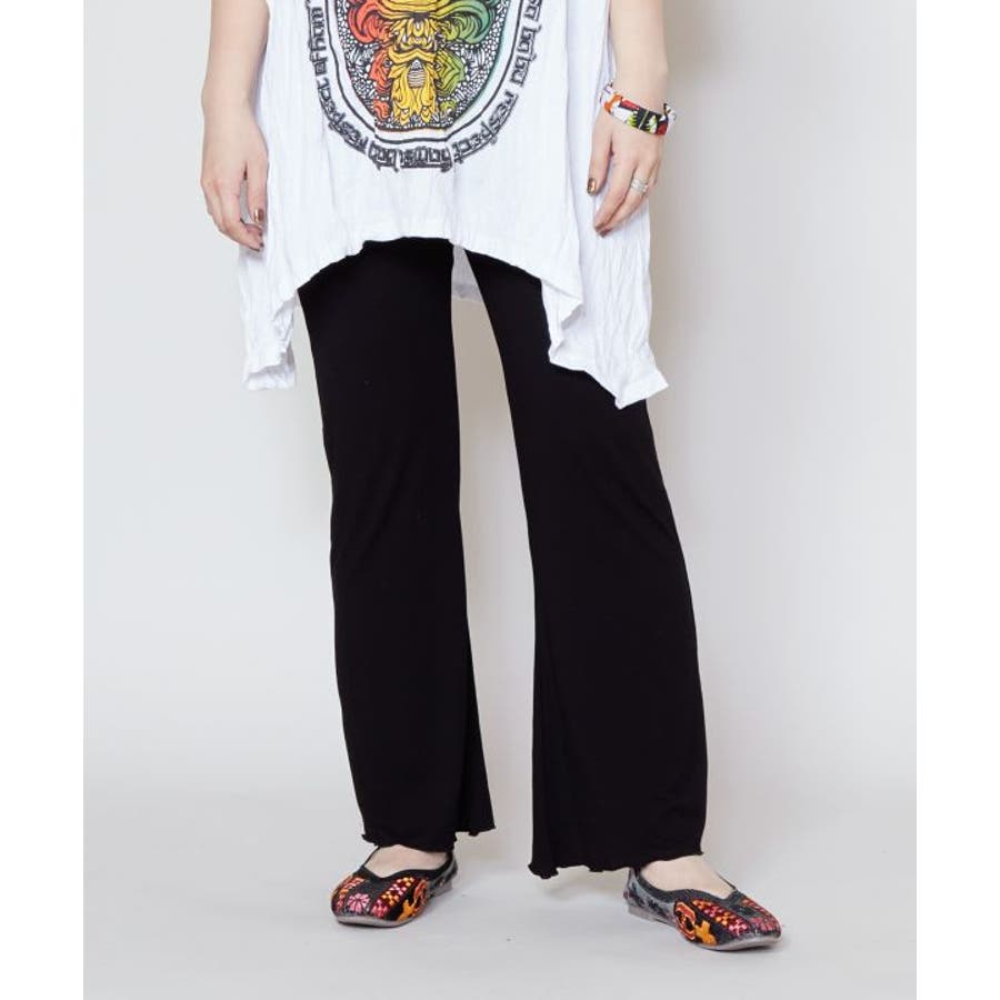 伸縮性のあるライクラ生地にこだわったリラックスパンツ。さらりとした肌触りと驚くほどに伸びやかな素材感で、普段使いはもちろん、ヨガなどのアクティブシーンでも大活躍間違いなし。腰元のさりげないロータスのプリントが、シンプルなのに個性のある印象になる一枚です。