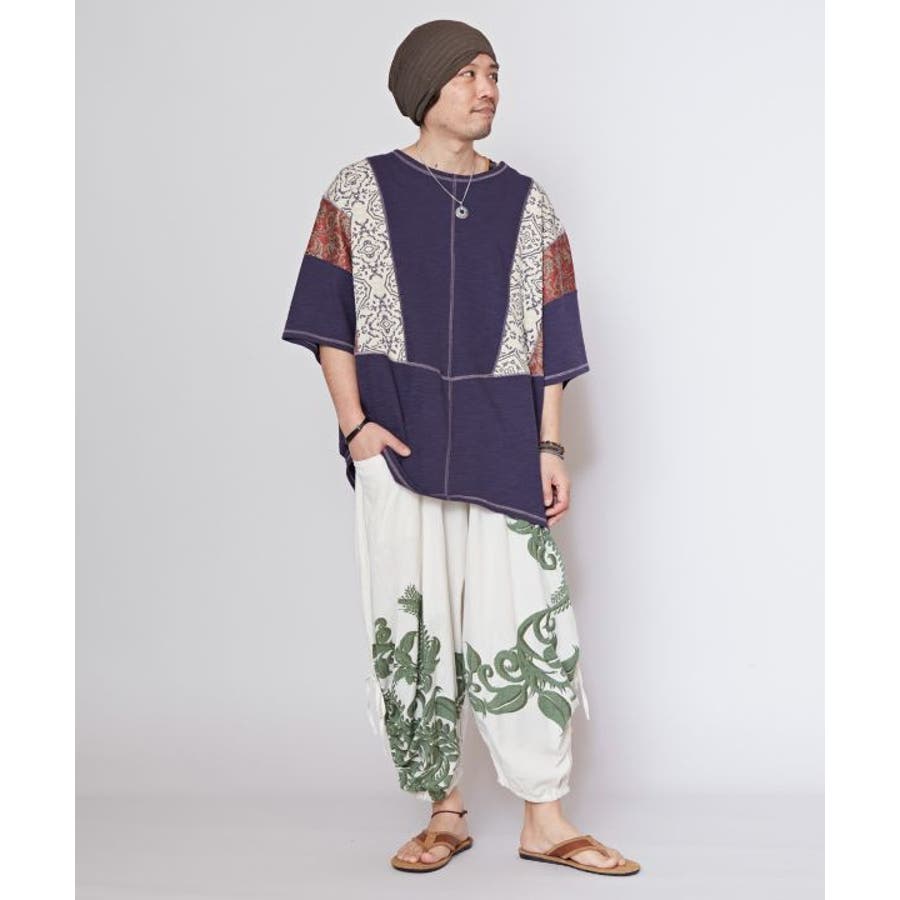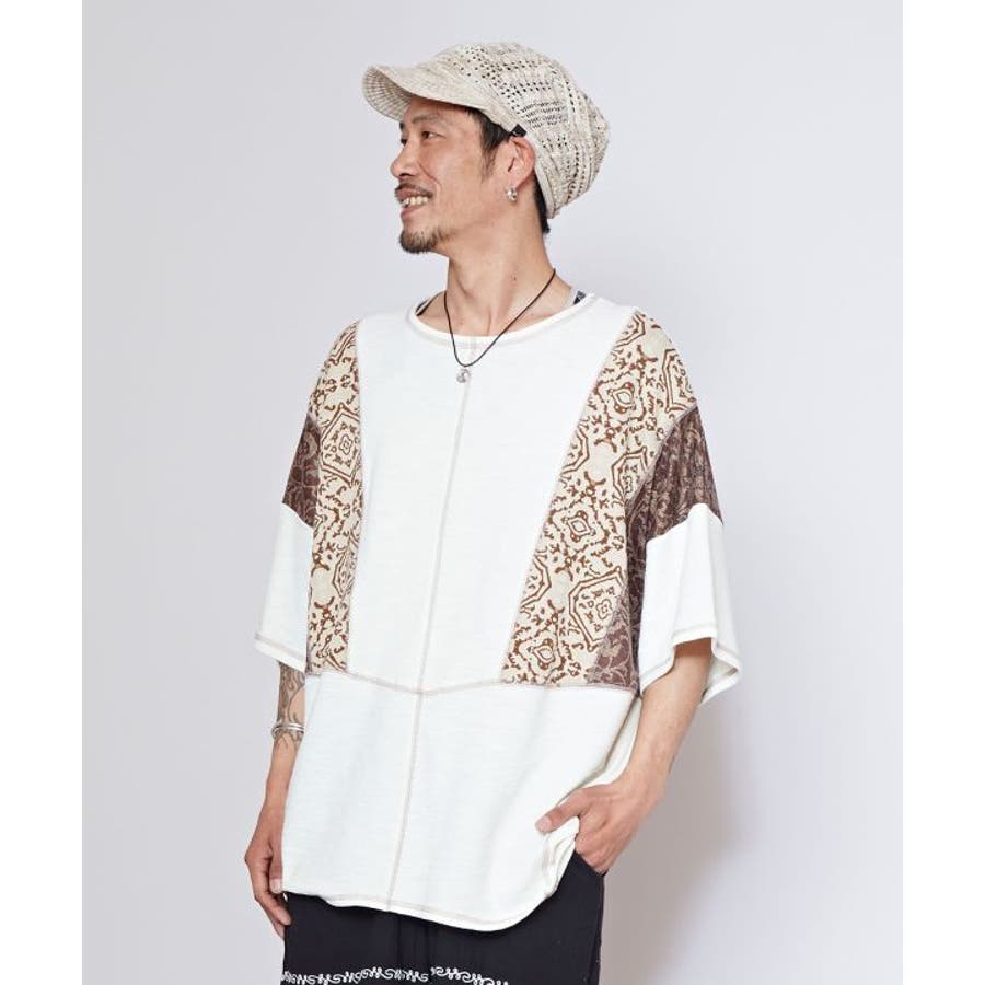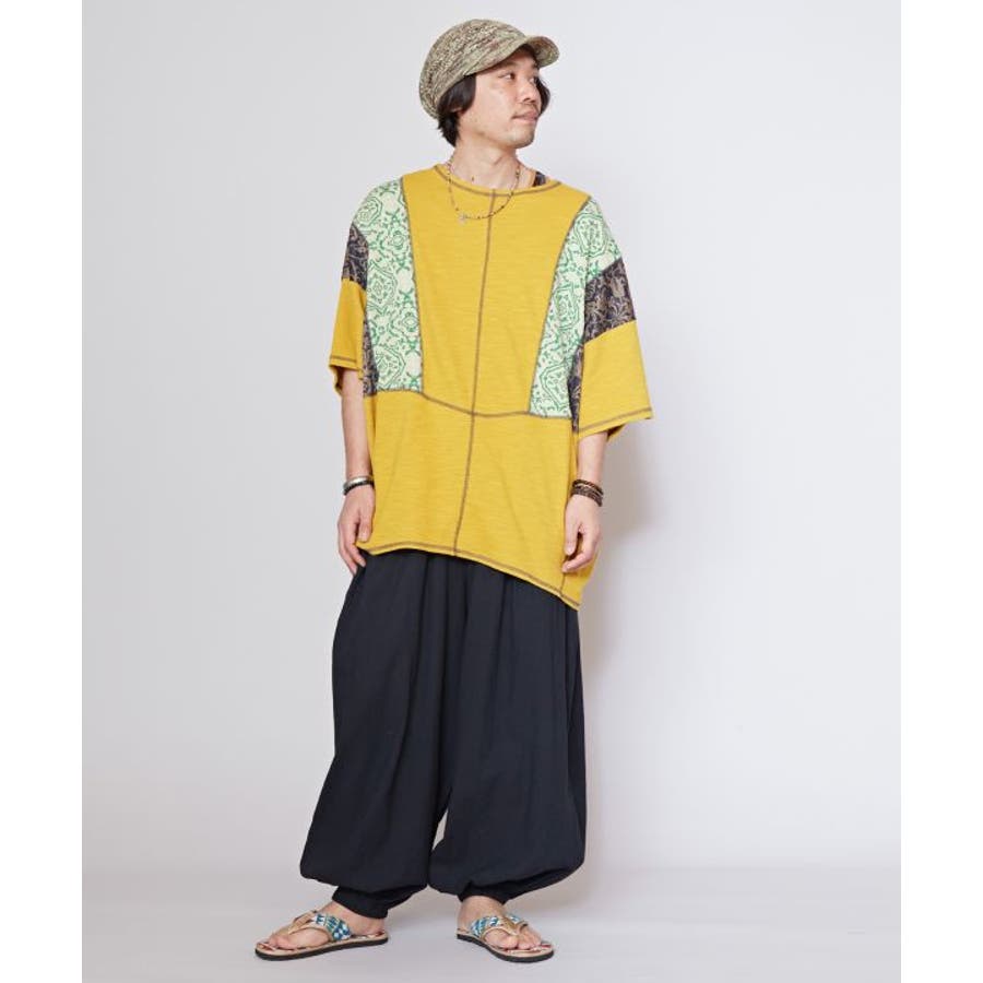 【チャイハネ】カジナメンズパッチワークトップス