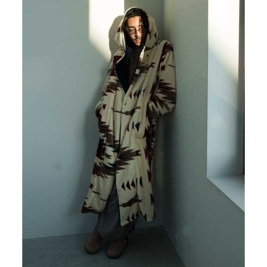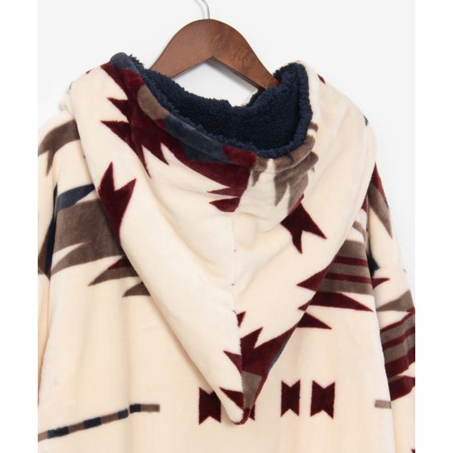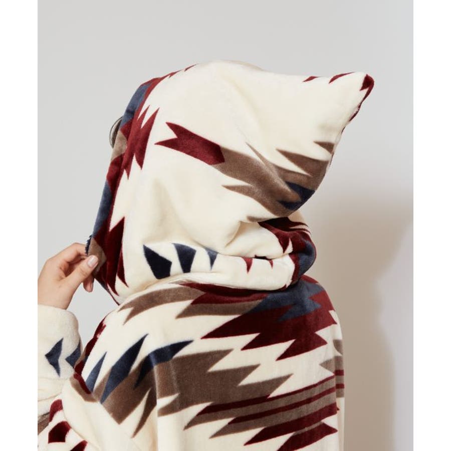 [NOMADY]大きなフードが特徴的な着るブランケット。ボタンの掛け方でサイズ調整可能な、男女兼用のフリーサイズ。ふんわりとした肌ざわりで、リラックスタイムや寒さ対策にぴったり。デザイン性と機能性を兼ね備えた、実用性の高いアイテムです。