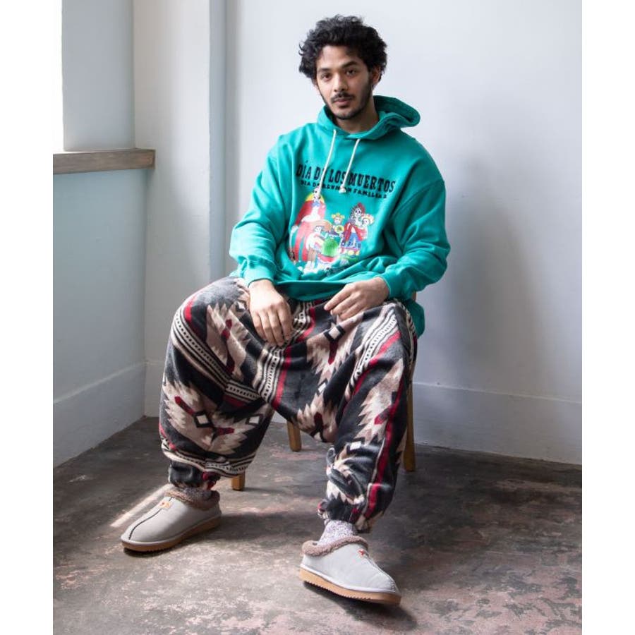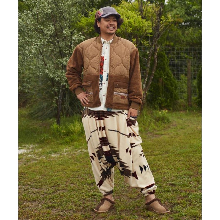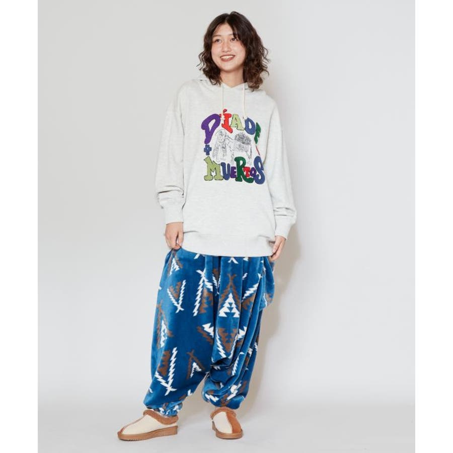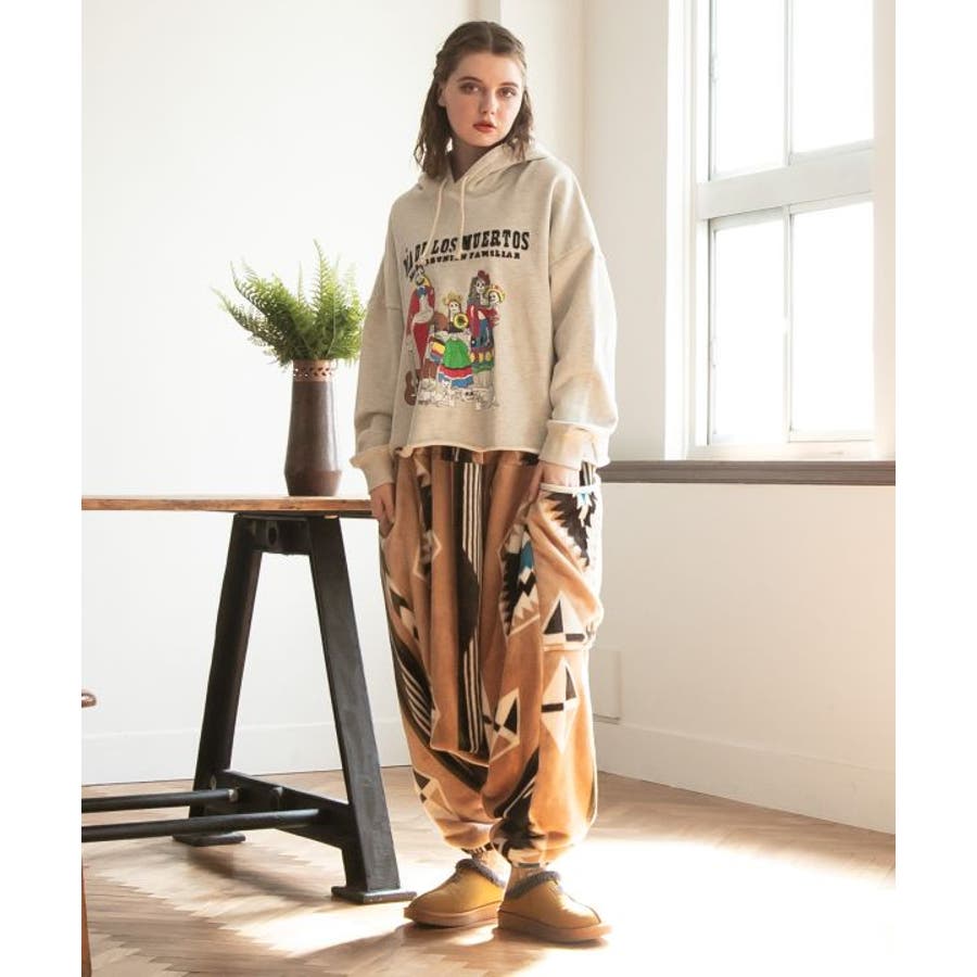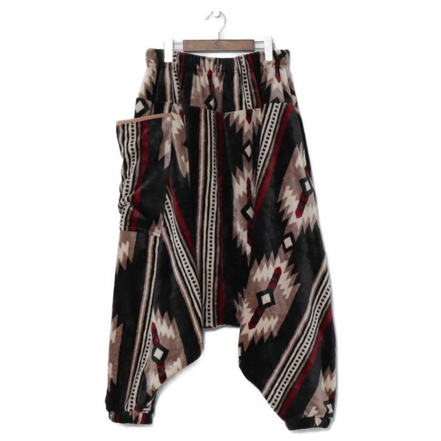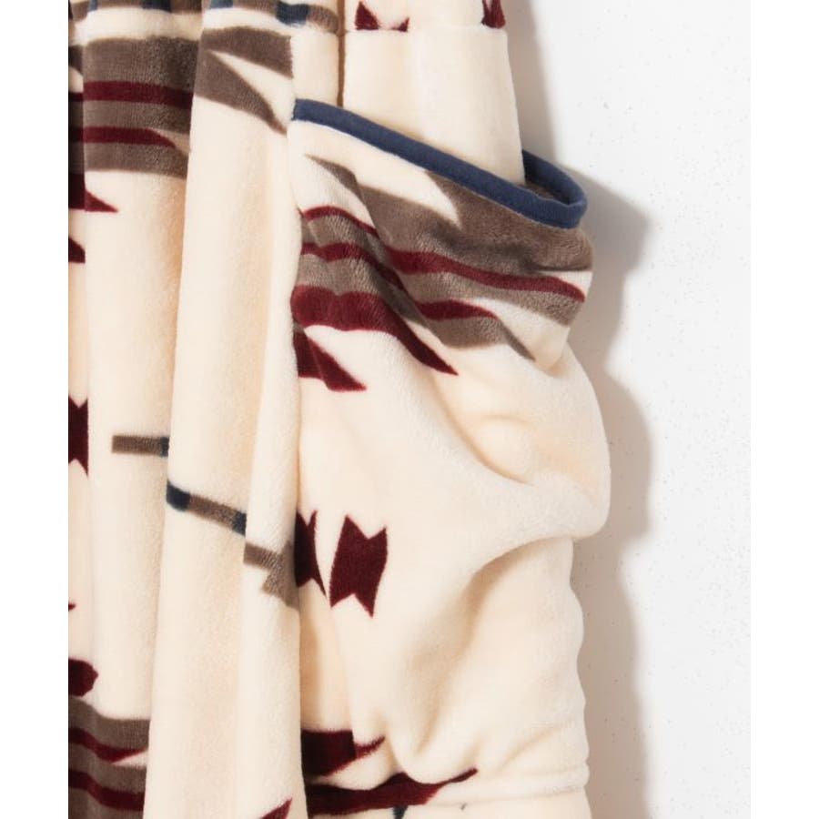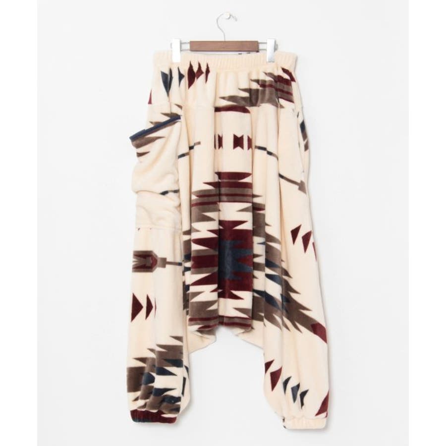 [NOMADY]ブランケット生地を使ったサルエルパンツ。男女兼用のフリーサイズ。スマホや財布が入る大きなポケットが付いているため、アウトドアシーンでも活躍。パッカブル仕様でクッションとしても使用可能。ふんわりとした肌ざわりで、リラックスタイムや寒さ対策にぴったり。デザイン性と機能性を兼ね備えた、実用性の高いアイテムです。