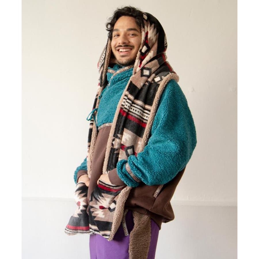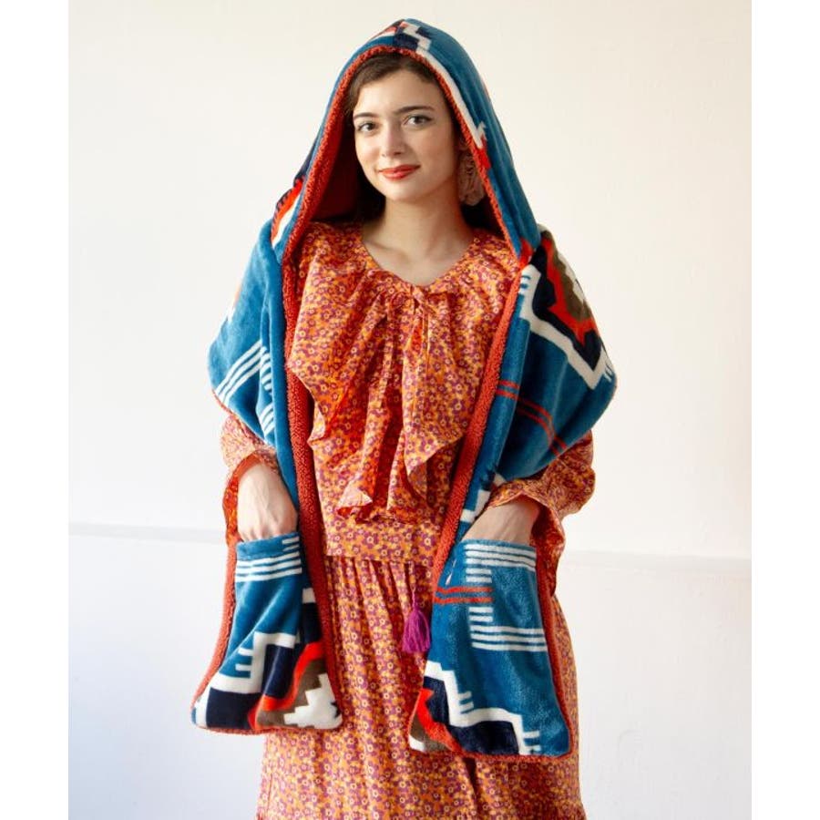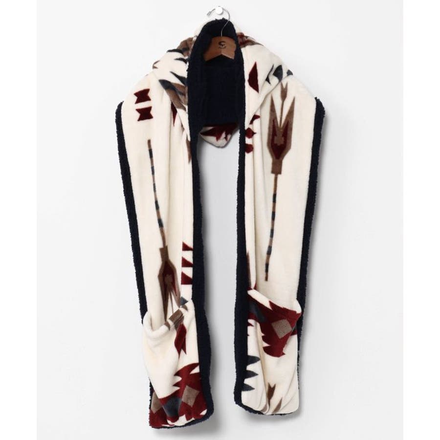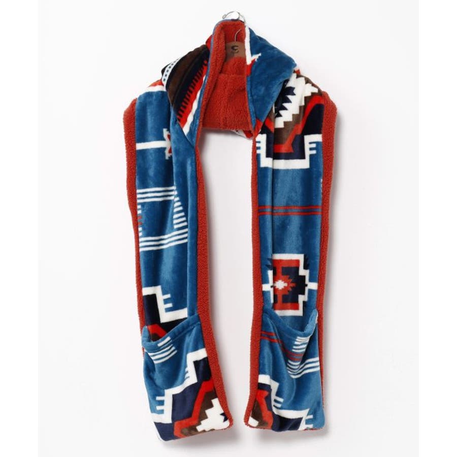 [NOMADY]大きなフードが特徴的なマフラー。ポケットが付いているため、手まで暖かい。ふんわりとした肌ざわりで、リラックスタイムや寒さ対策にぴったり。