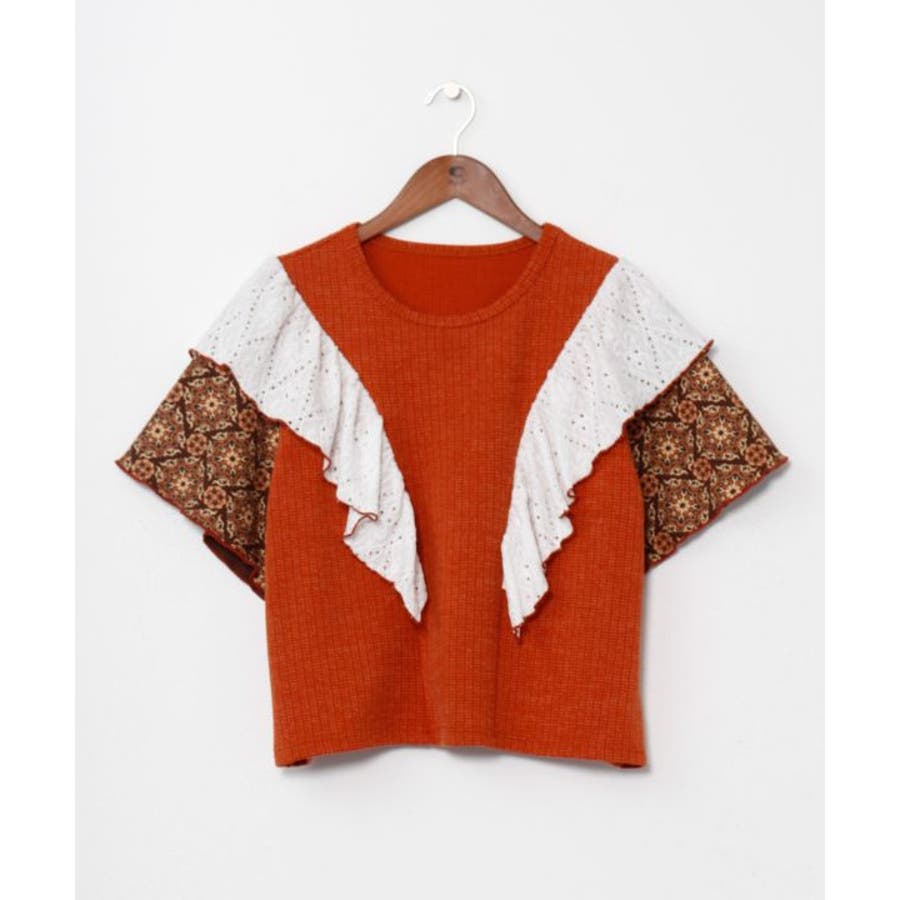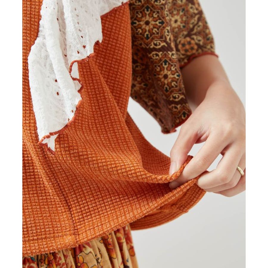 | 素材 | 本体: ポリエステル87% レーヨン10% ポリウレタン3% レース部分: ポリエステル95% ポリウレタン5% プリント部分: ポリエステル95% ポリウレタン5% |