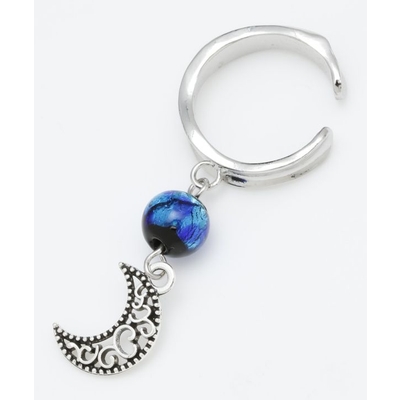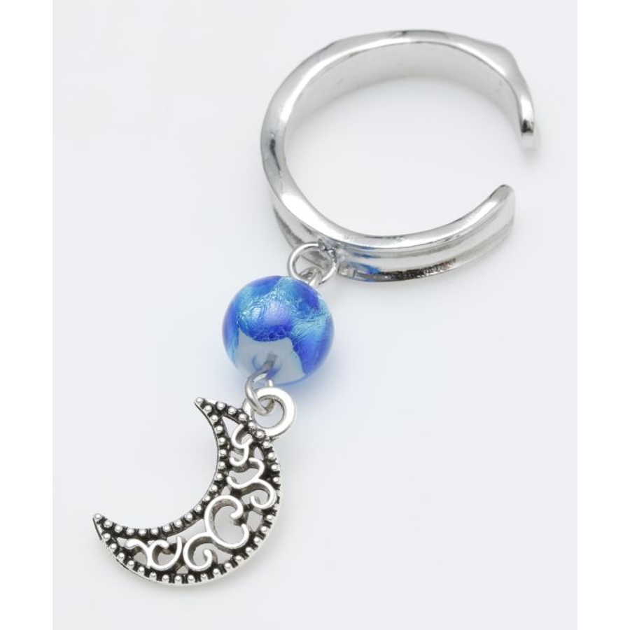 海面から光が差し込む神秘的な海の色をイメージしたホタル玉のイヤーカフ。エキゾチックな月のモチーフが素敵なデザイン。光に当てるときらりと輝き、耳元を美しく彩ってくれる。