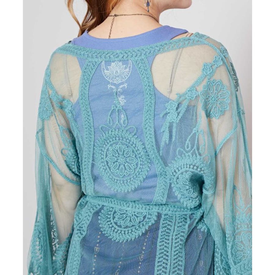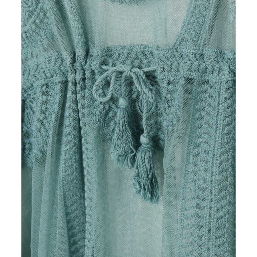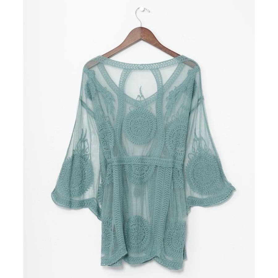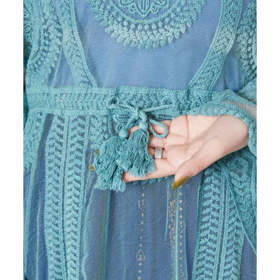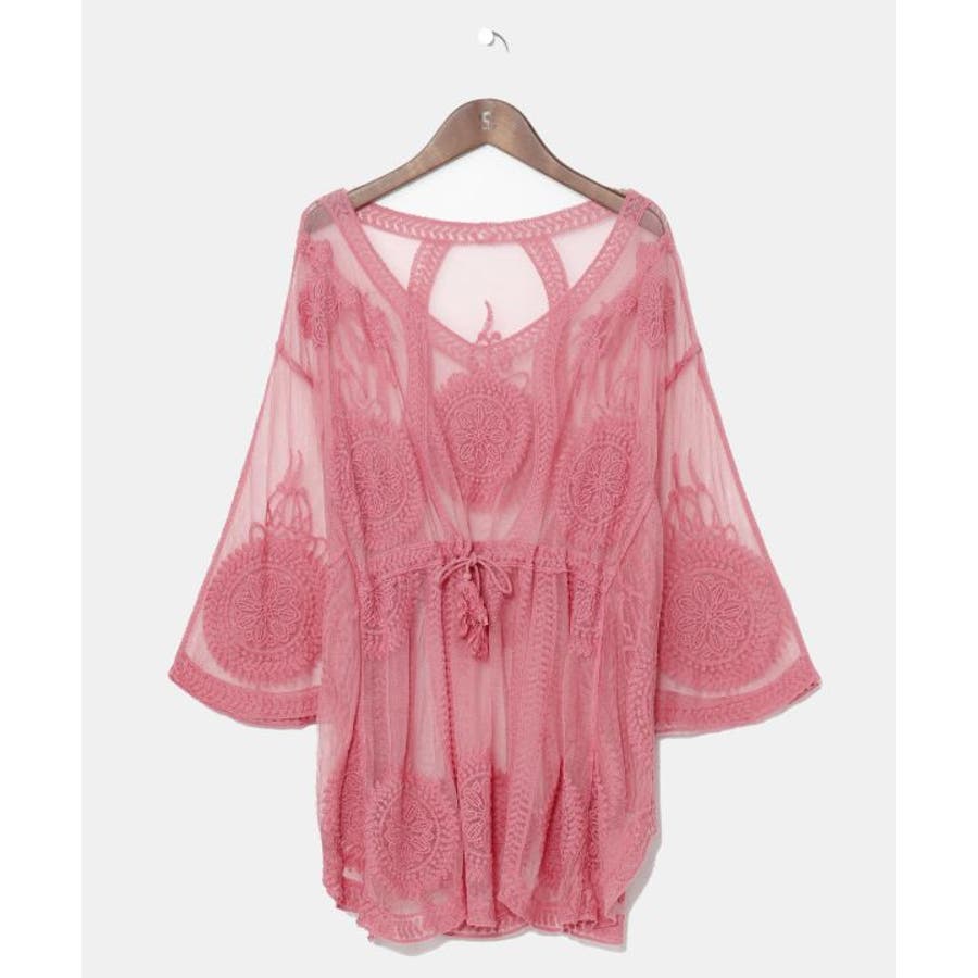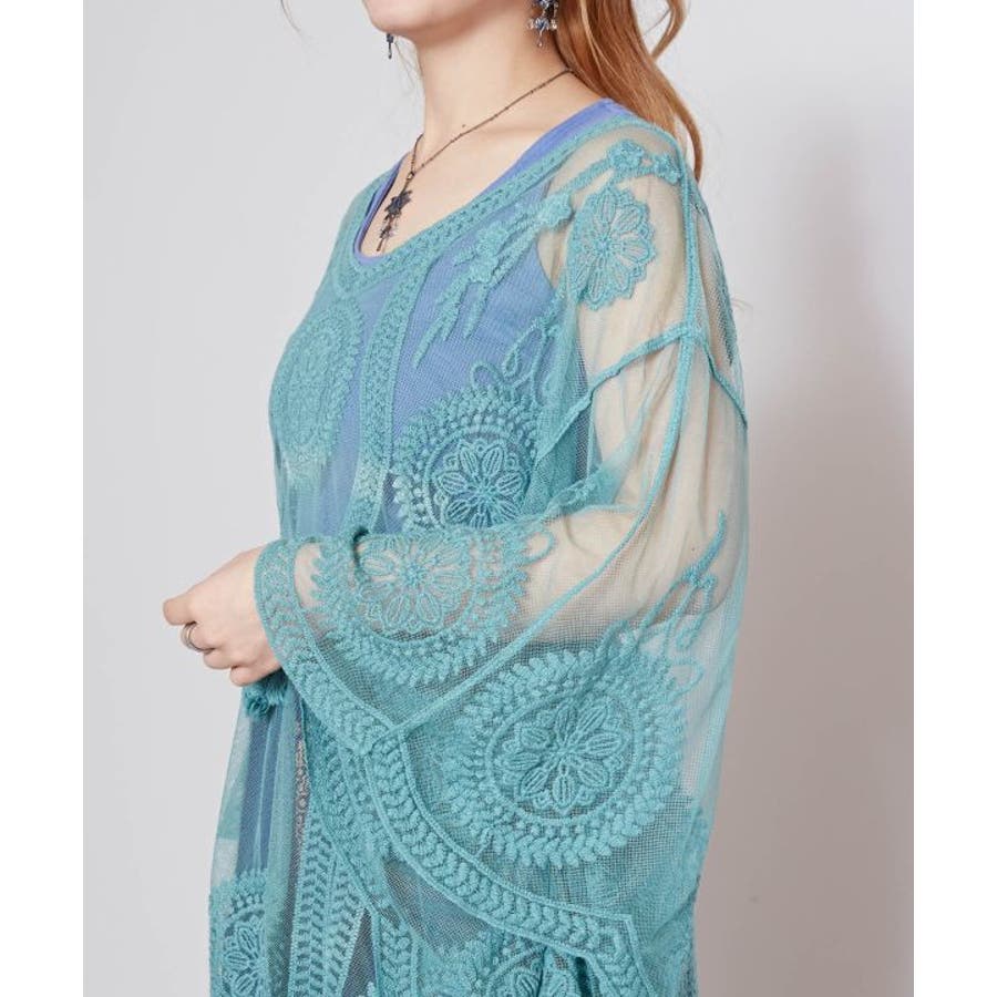 レースの素材が涼し気なトップス。ウエストマークで変形トップスとしても。大胆な刺しゅう模様と鮮やかなカラーバリエーションが魅力的。
