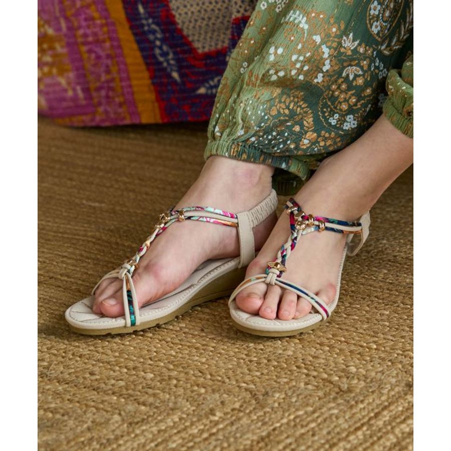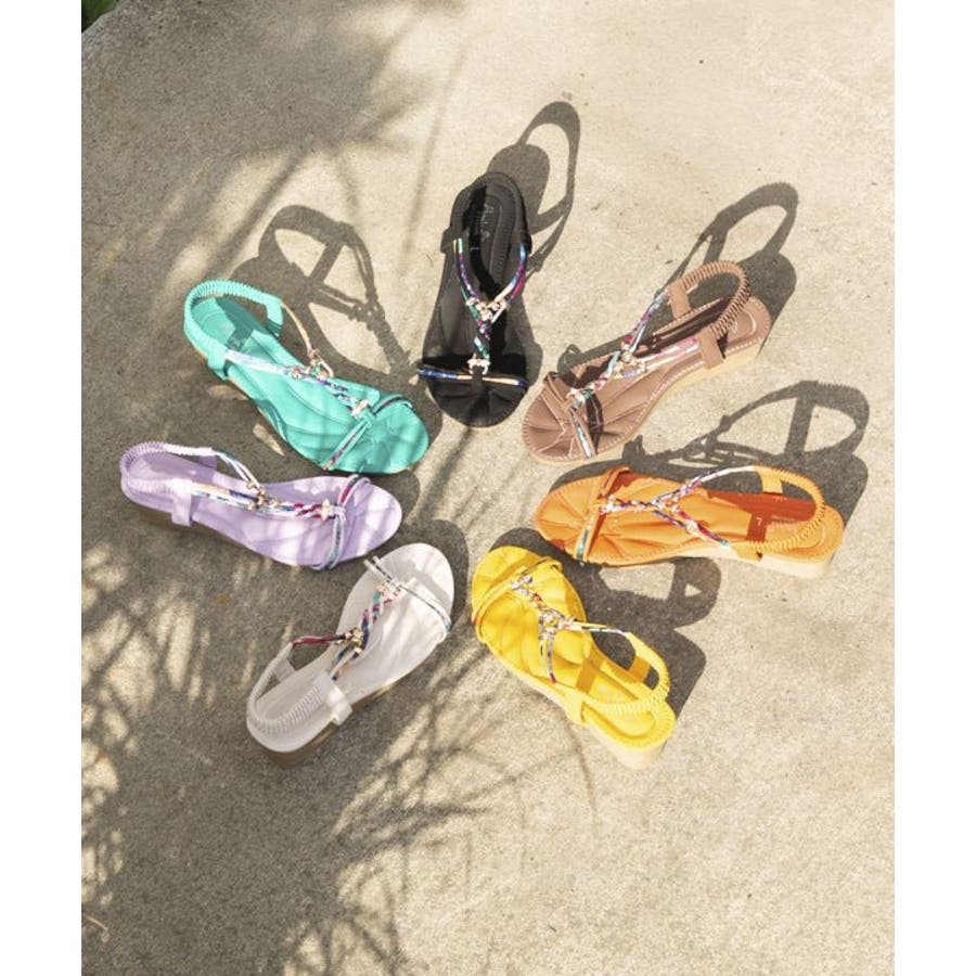 リゾートシーンを盛り上げる、鮮やかなサンダル。カラー選びで自分だけの個性を楽しめる。