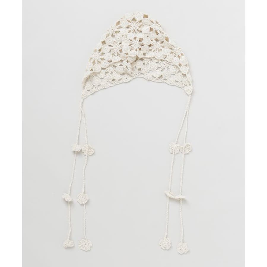 クロシェ編みの立体感がかわいいバブーシュカキャップ。ナチュラルな単色使いでどんなコーデにもなじみやすく、さりげないアクセントとして使える万能アイテム。