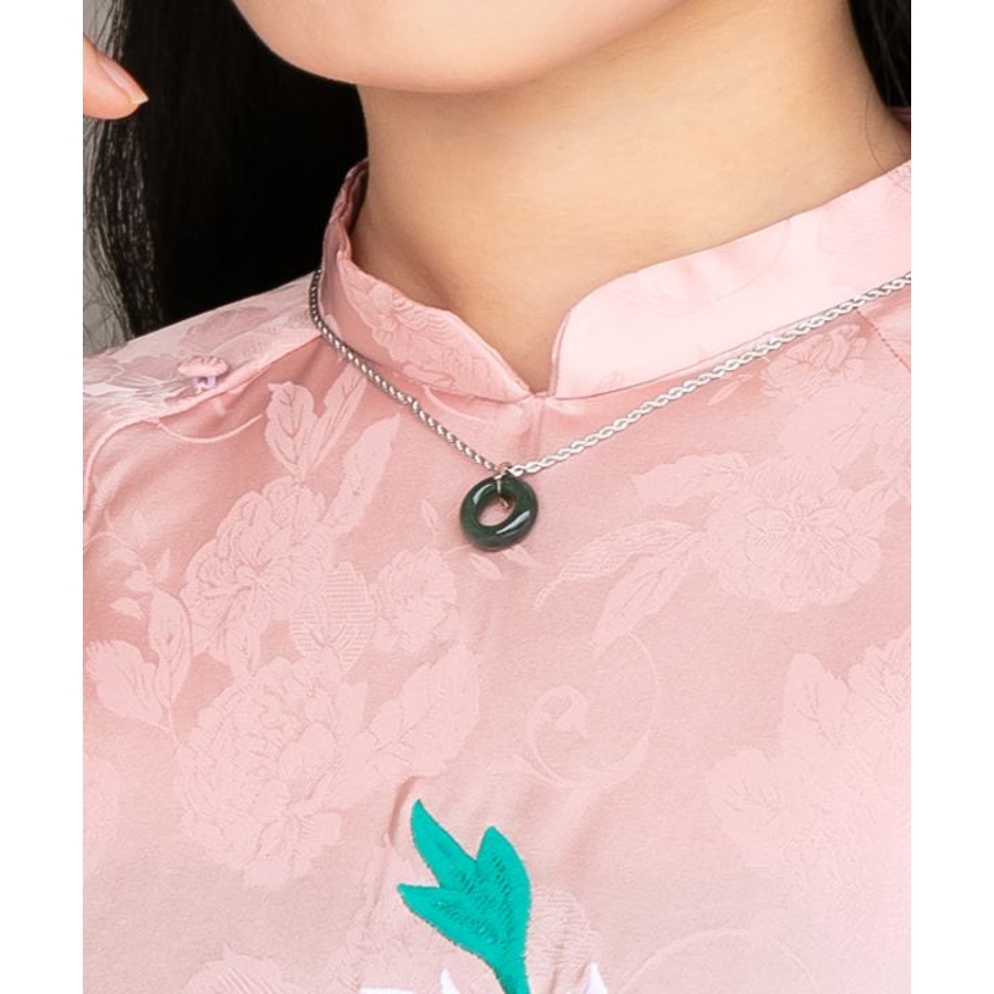 翡翠は古来「魂を癒す石」として、シルクロードを旅する人々に護符として携えられてきました。輪モチーフをトップに添えたネックレスは、ご縁や巡りを象徴する意味あるデザイン。