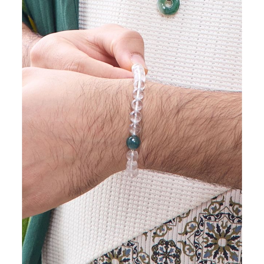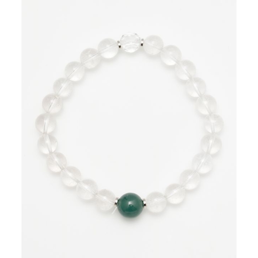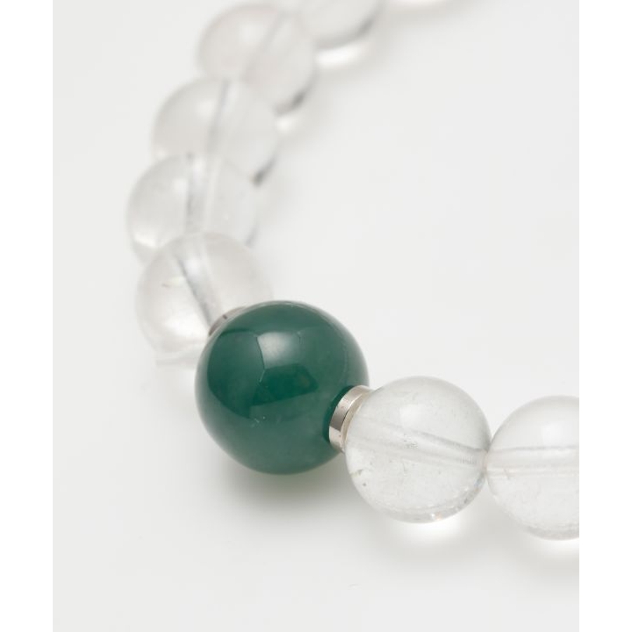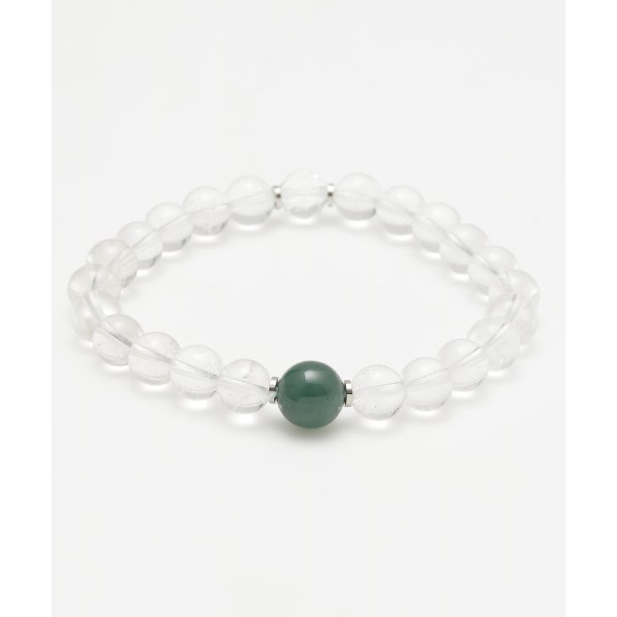 翡翠は古来「魂を癒す石」として、シルクロードを旅する人々に護符として携えられてきました。翡翠と水晶を組み合わせたメンズサイズのブレスレットは、浄化と癒しの力を一度に感じられる心強い一本。