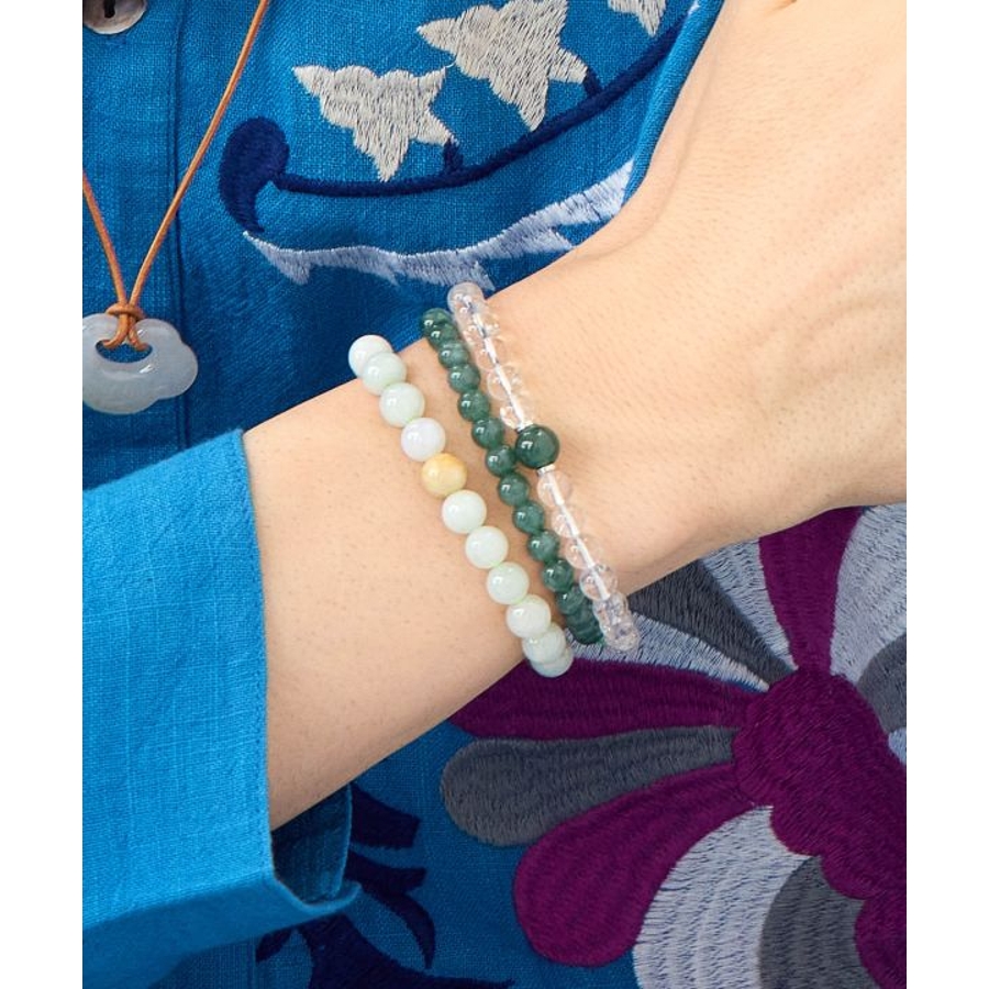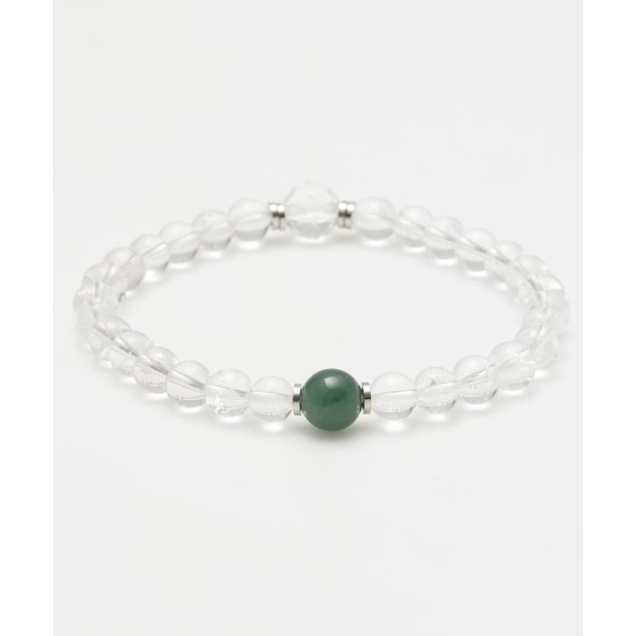 翡翠は古来「魂を癒す石」として、シルクロードを旅する人々に護符として携えられてきました。翡翠×水晶のシンプルブレスレットは、そっと手元を守り整える、静かな祈りのアクセサリー。