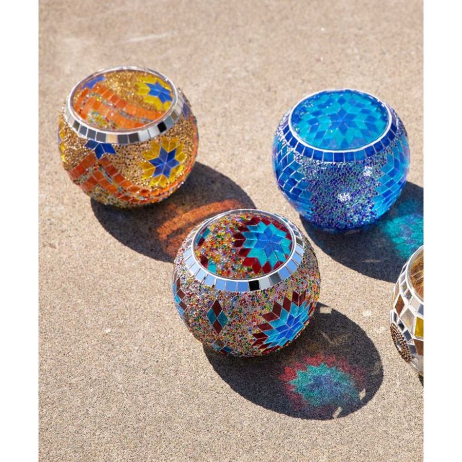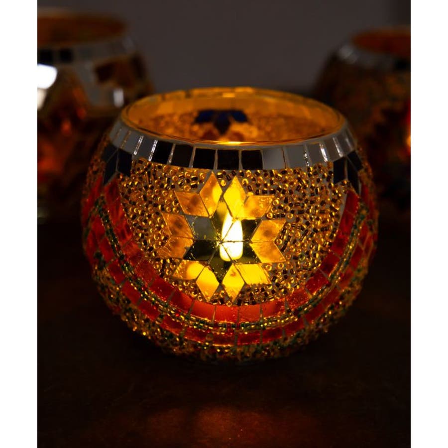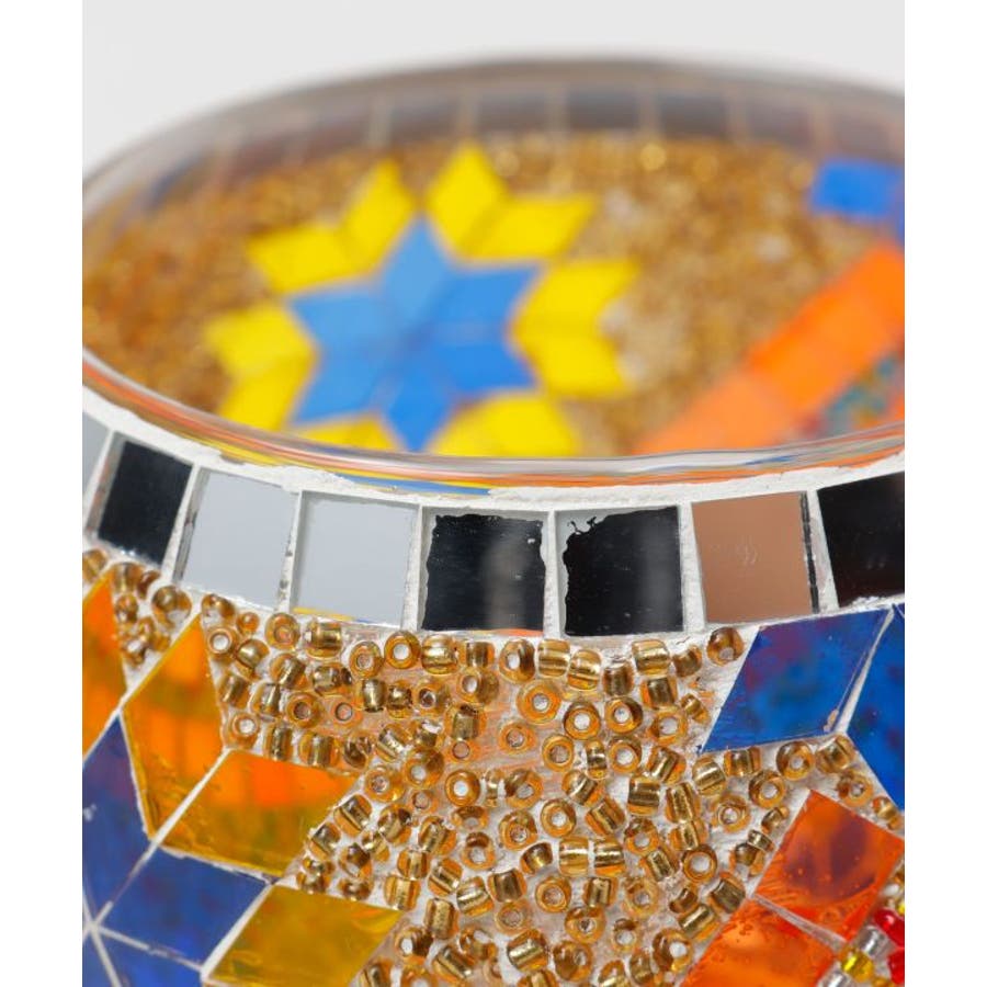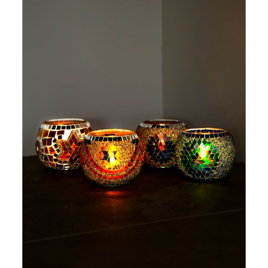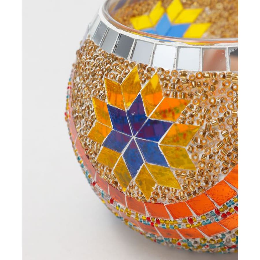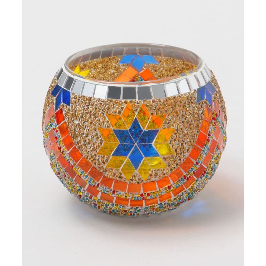 モザイクタイルの国、モロッコ。そんなモロッコのモザイクガラスをイメージしたキャンドルホルダー。見る角度によって光の反射が異なる、大胆なデザイン。揺れるキャンドルの光で心に安らぎを。色によって異なるラインデザインアイテム。