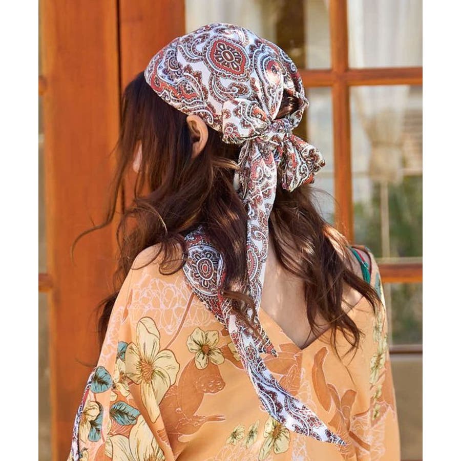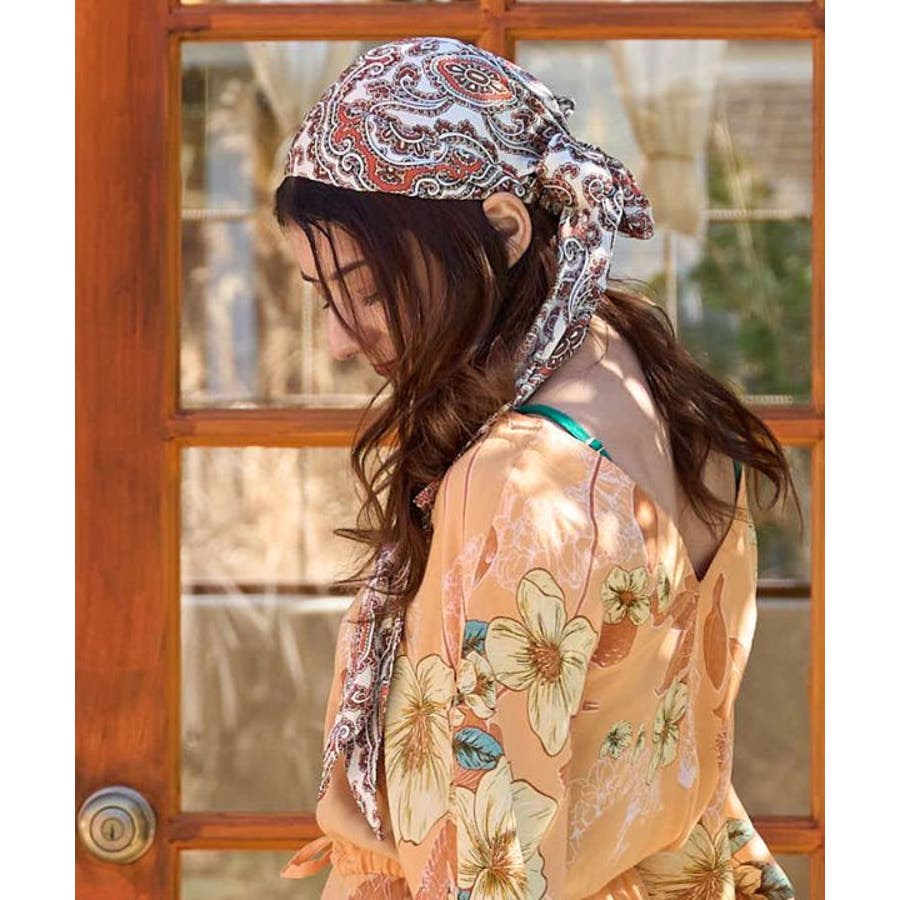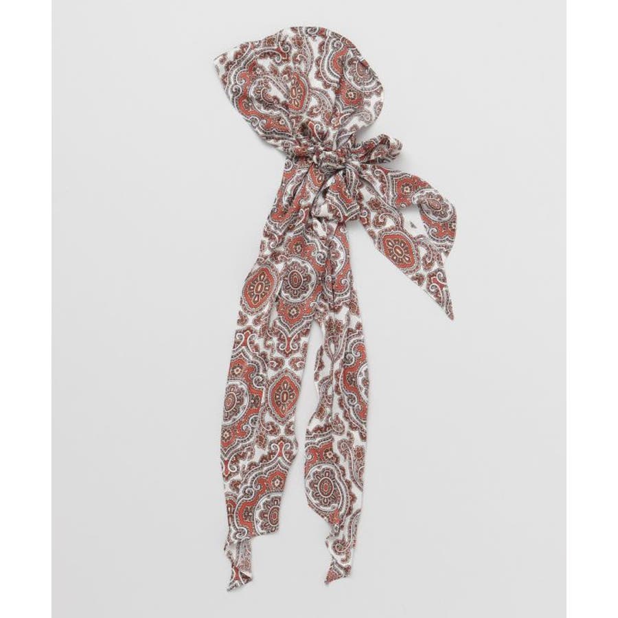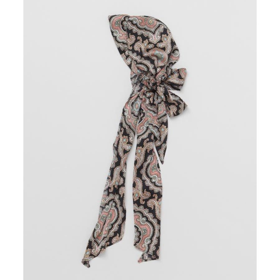 インドが発祥といわれているペイズリー柄が目を惹くヘアバンド。後がゴムになっているので、着脱も簡単。ヒラヒラとスカーフ部分をなびかせてもOK。後でクロスさせて前で結ぶとCAP風にも着用が可能。ロングへアとスカーフ部分を編みこんでみるのもおすすめ。自分らしいターバンヘアを楽しめます。