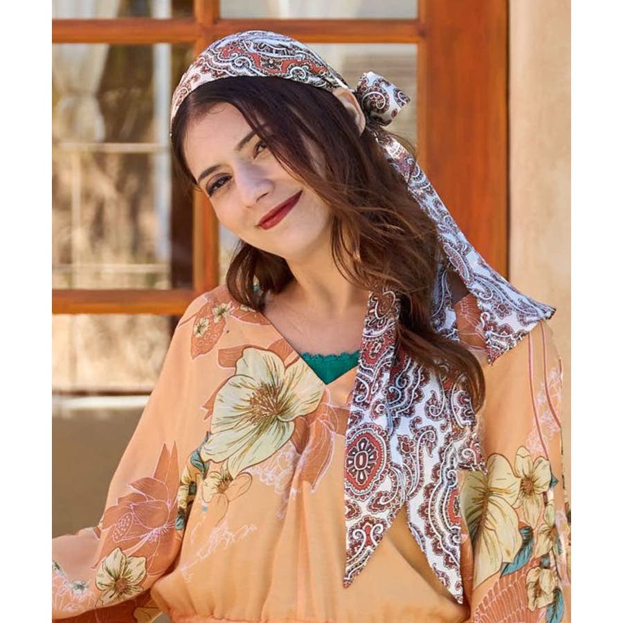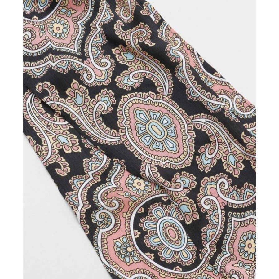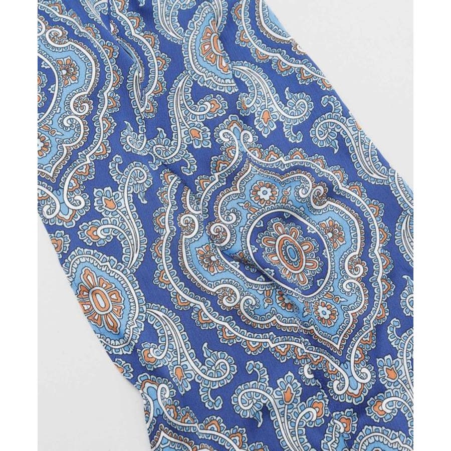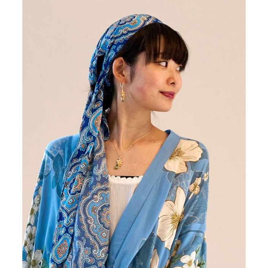 インドが発祥といわれているペイズリー柄が目を惹くヘアバンド。後がゴムになっているので、着脱も簡単。ヒラヒラとスカーフ部分をなびかせてもOK。後でクロスさせて前で結ぶとCAP風にも着用が可能。ロングへアとスカーフ部分を編みこんでみるのもおすすめ。自分らしいターバンヘアを楽しめます。
