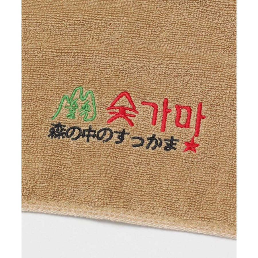 【Amina×森の中のすっかま】韓国式サウナ「森の中のすっかま」とのコラボレーションで生まれた、サウナシーンにぴったりのフェイスタオル。韓国式サウナでは羊巻きといわれるタオルの巻き方でサウナを楽しみます。