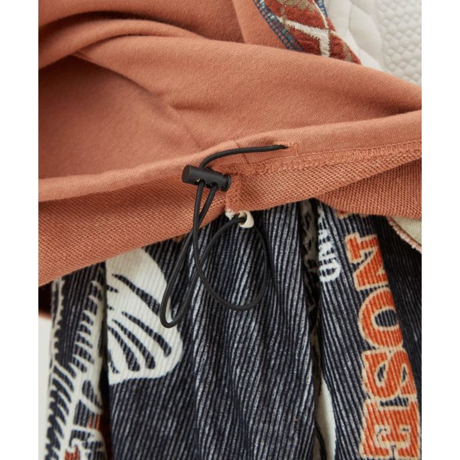 | 素材 | 本体: ポリエステル56% 綿44% 脇柄部分: ポリエステル69% レーヨン25% 綿3% ポリウレタン3% ゴブラン部分: ポリエステル80% 綿20% 前中心裾部分: ポリエステル95% ポリウレタン5% |