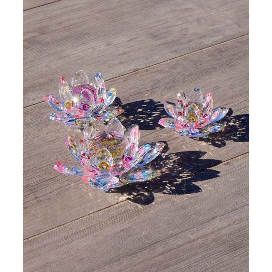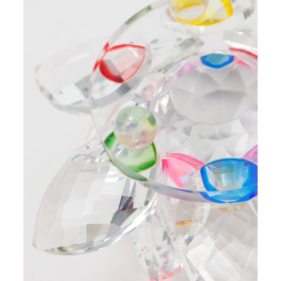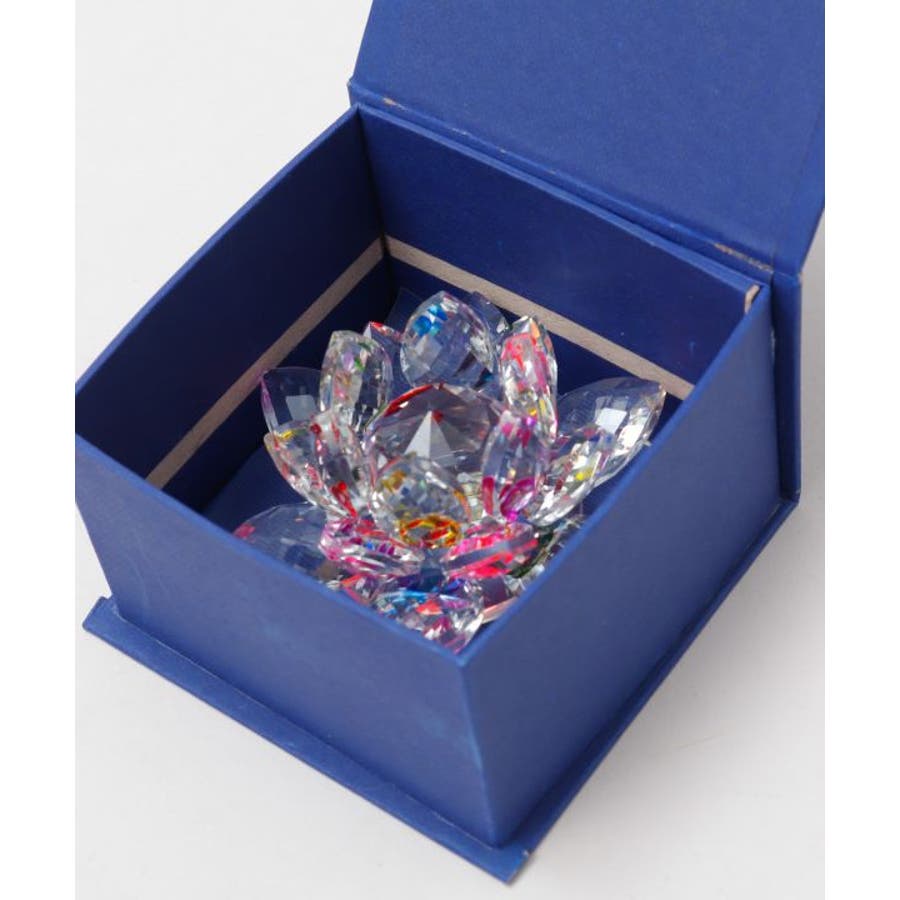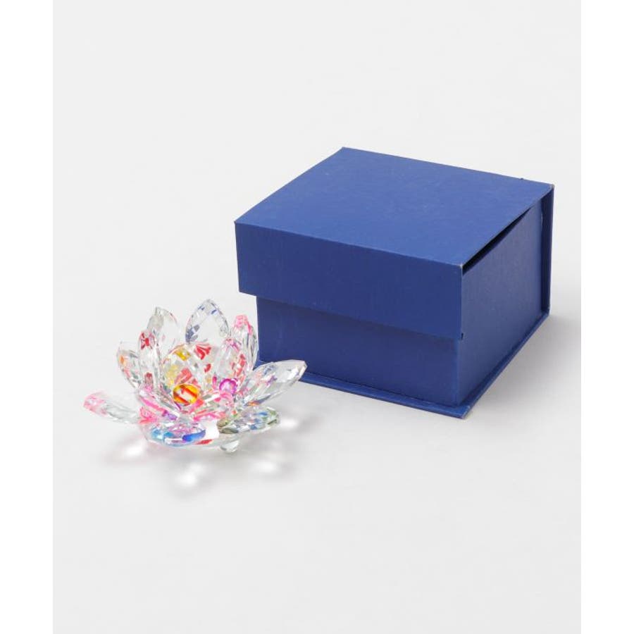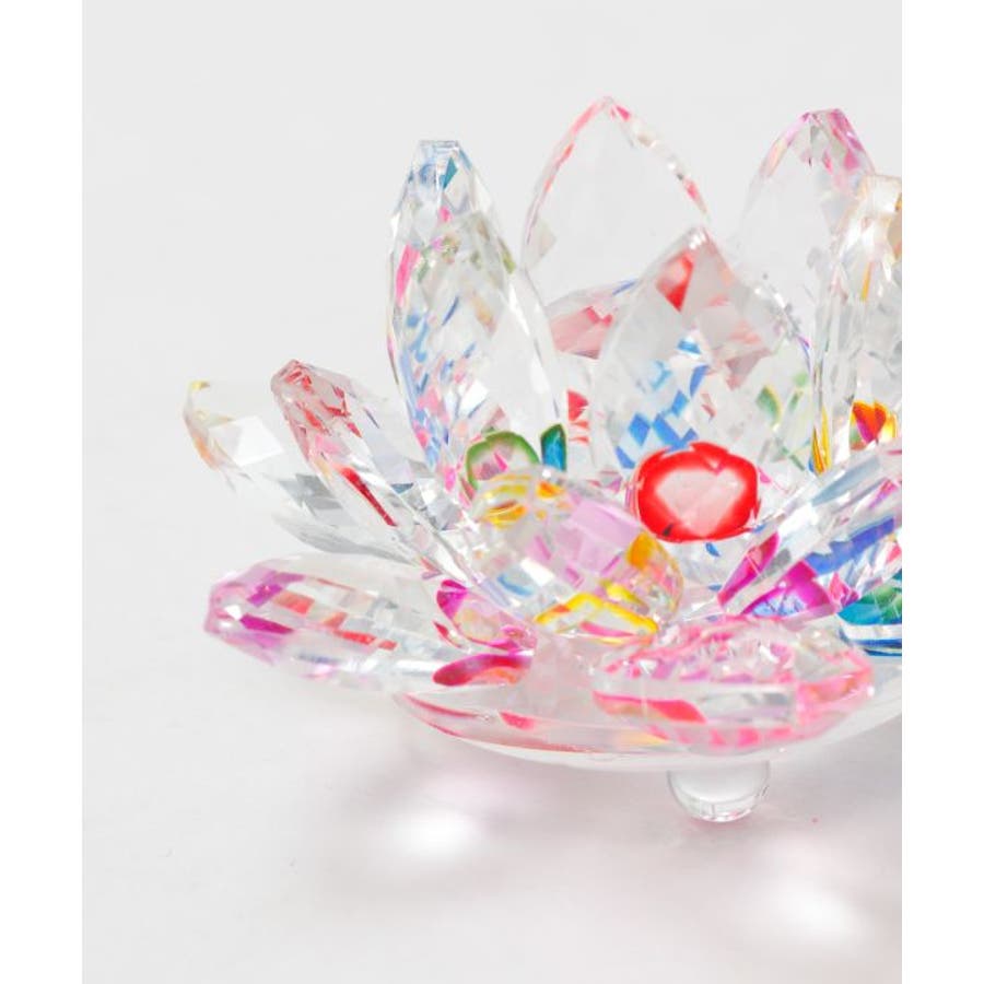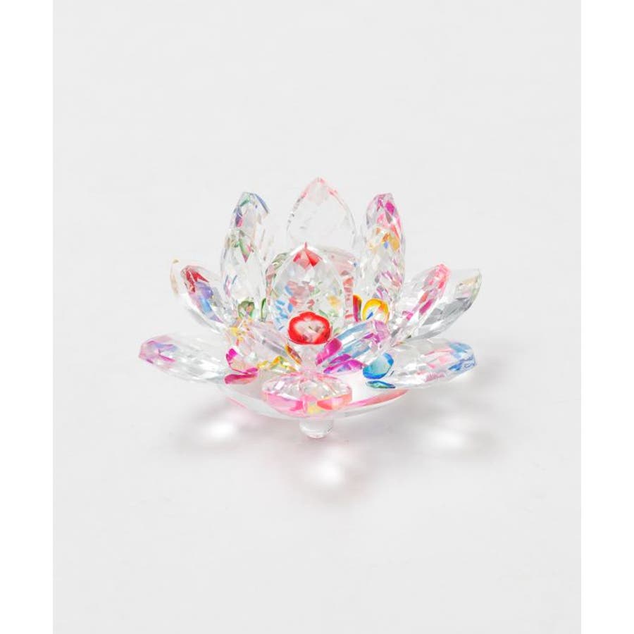 オリエンタルな雰囲気漂うガラスロータスのオブジェ。泥水の中から美しい大輪の花を咲かせる蓮は「浄化・再生」の意味を持つと云われる。太陽の光が重なったガラスの花びらに反射し、部屋中に美しい光を散りばめます。幸運の兆しともいわれる虹の鮮やかな色合いを光にあて「陽」の運気を取り入れ、幸せを運びこもう。