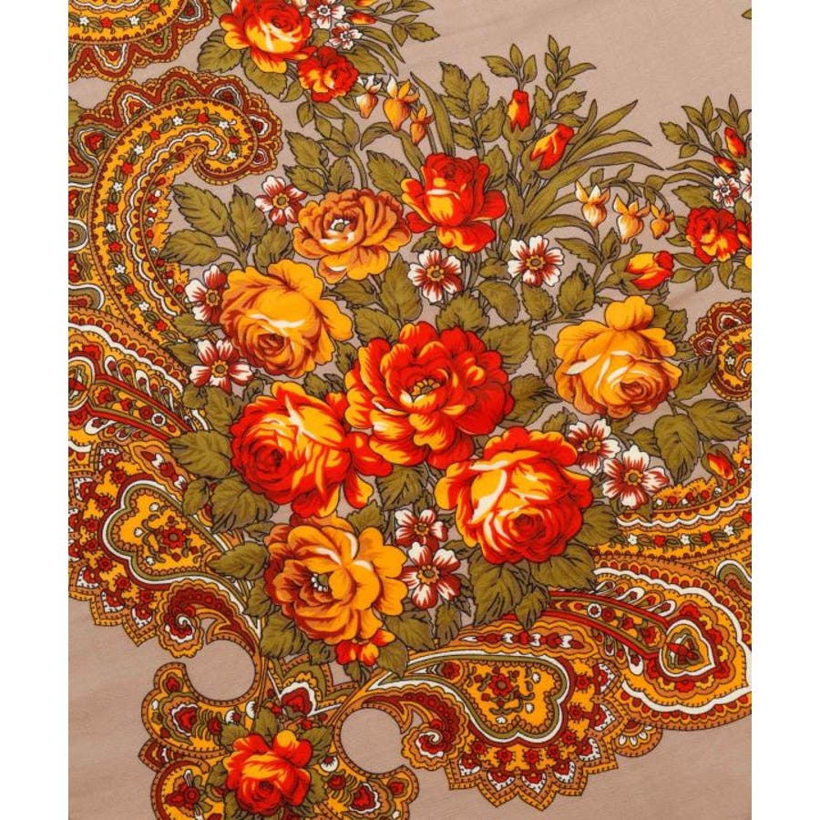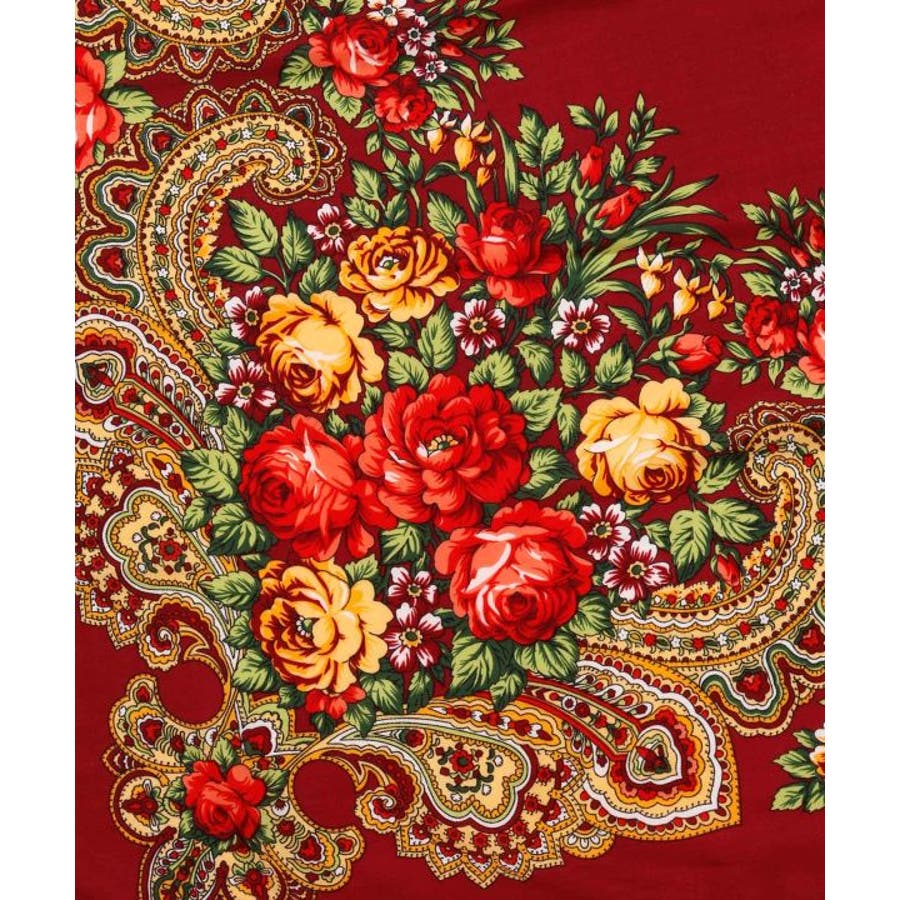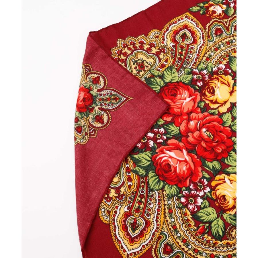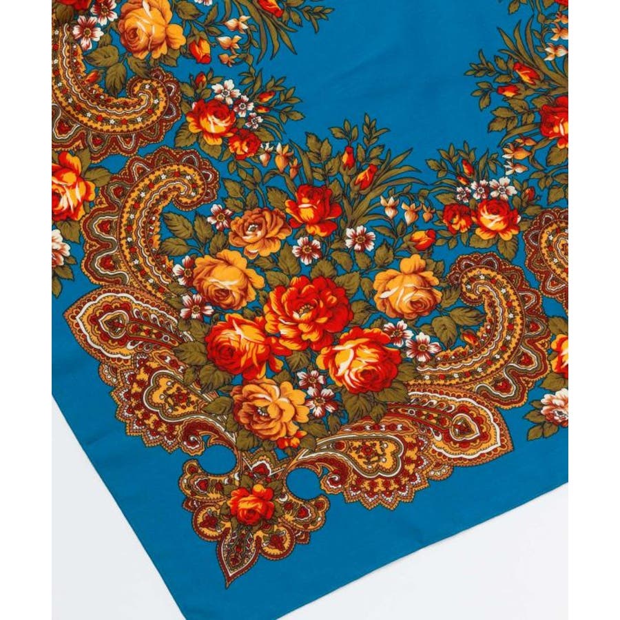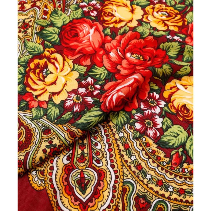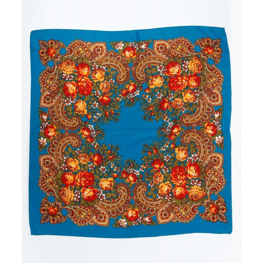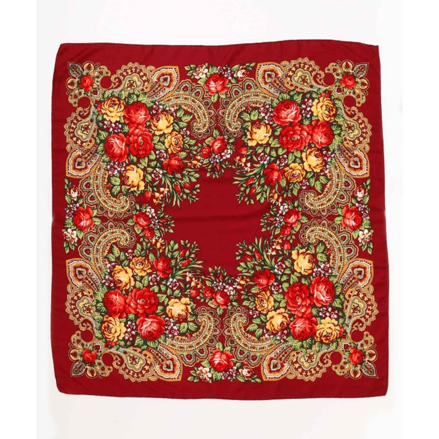 全体に施された鮮やかな花柄が、上品さを際立たせるスカーフ。使い方次第でいろいろな見せ方ができる万能アイテムです。