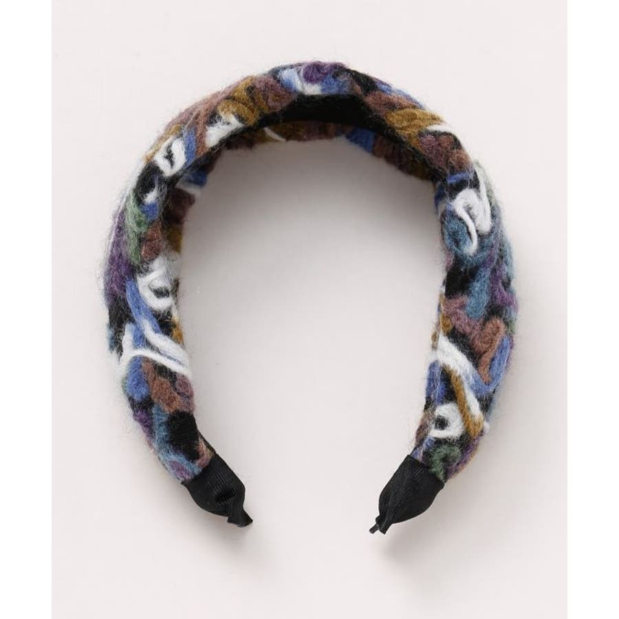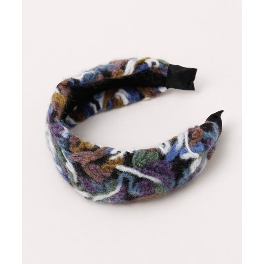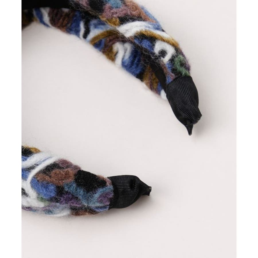毛糸が立体的に編みこまれたカチューシャ。存在感バツグンなボリューム感はコーディネートのスパイスに。