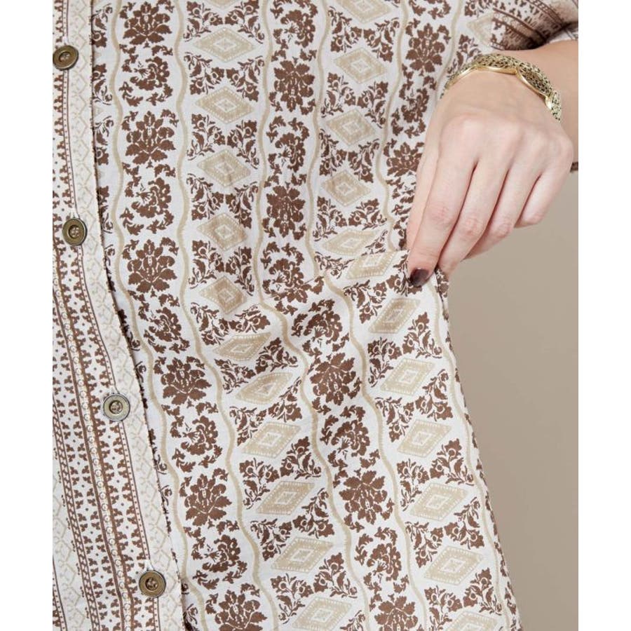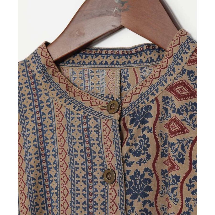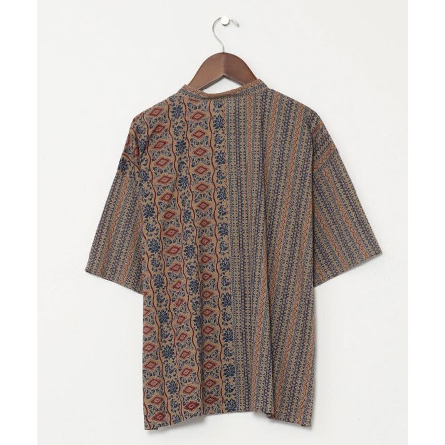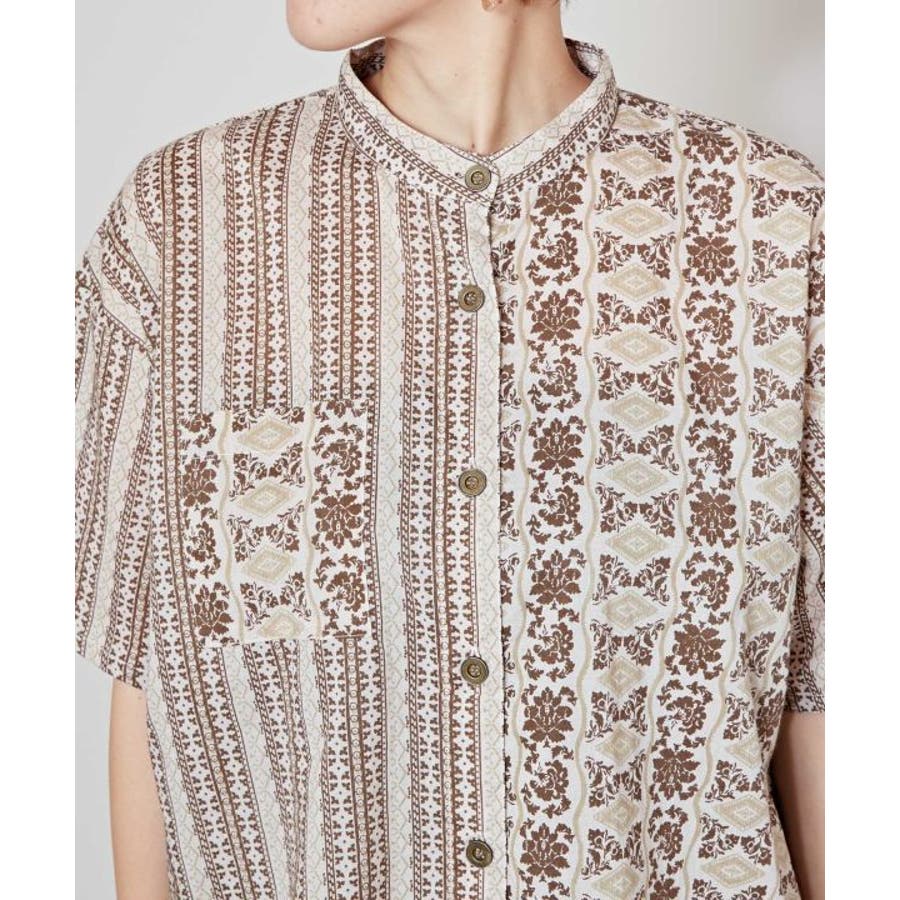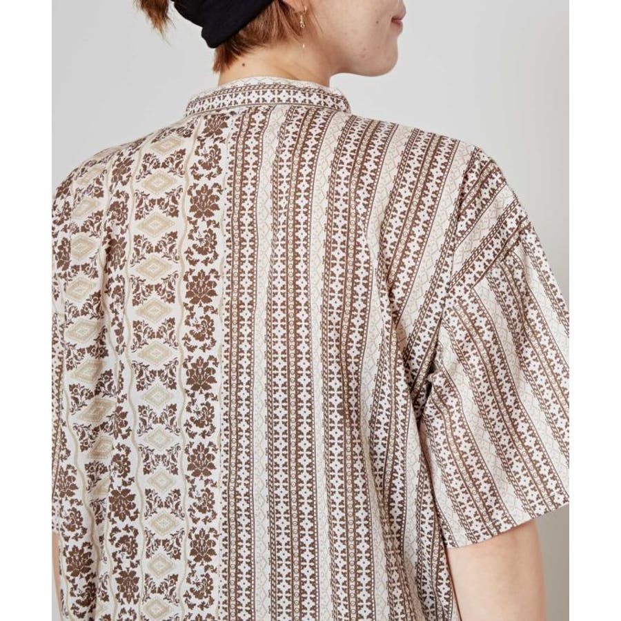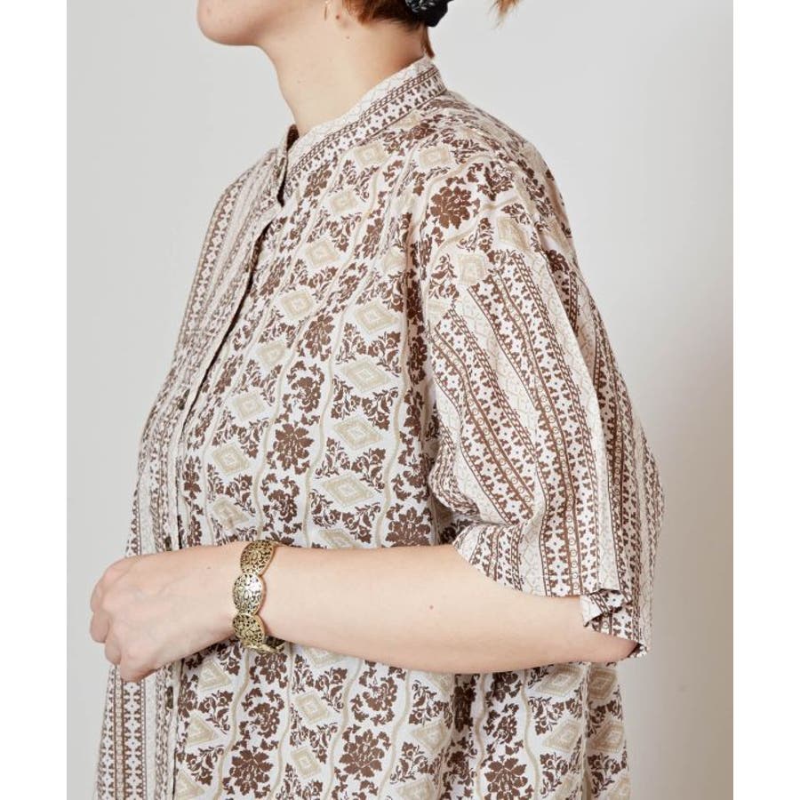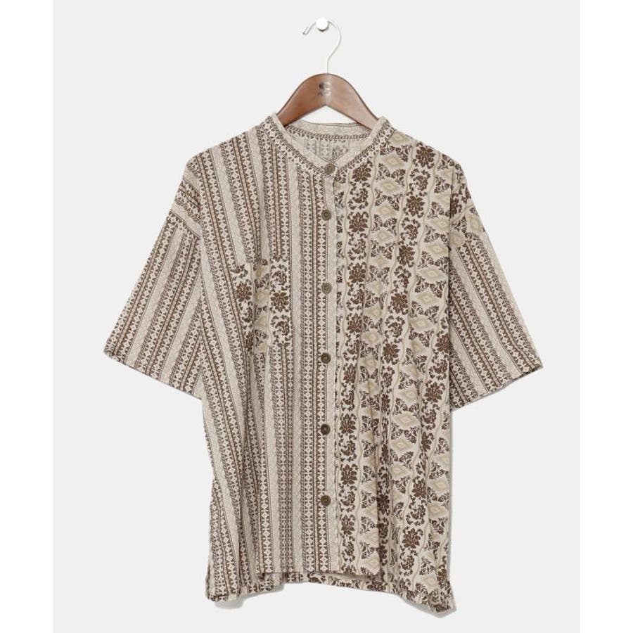 インド更紗をモチーフにした花柄×ストライプ柄のシャツ。涼し気な薄手の綿素材で軽い着心地のアイテム。
