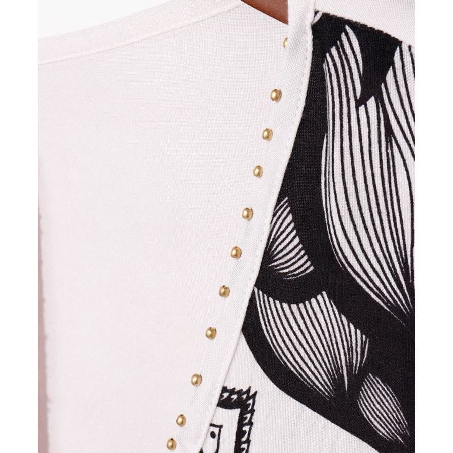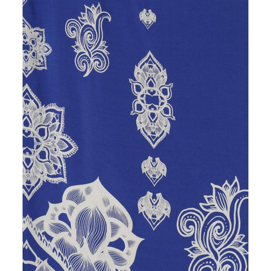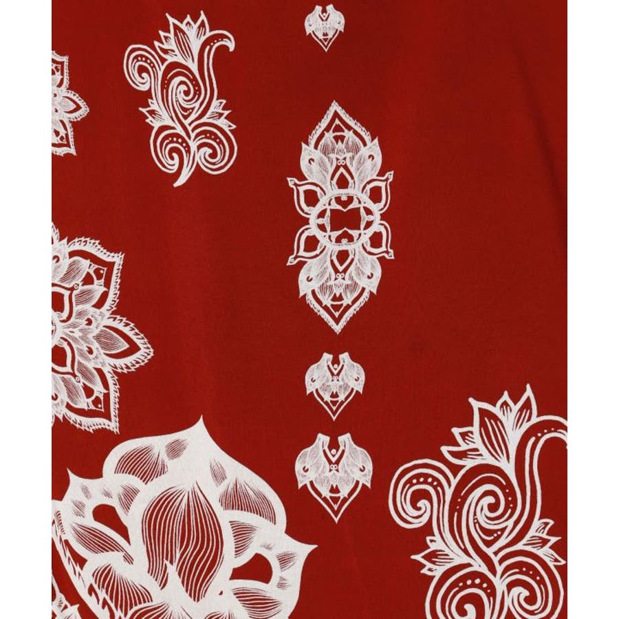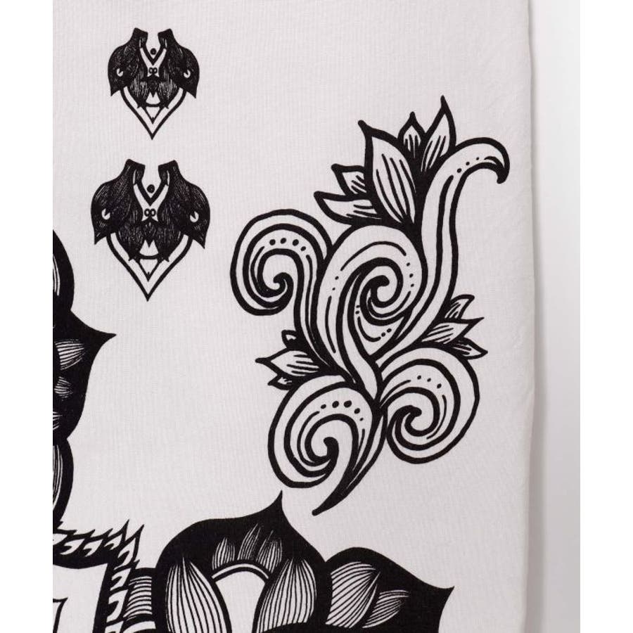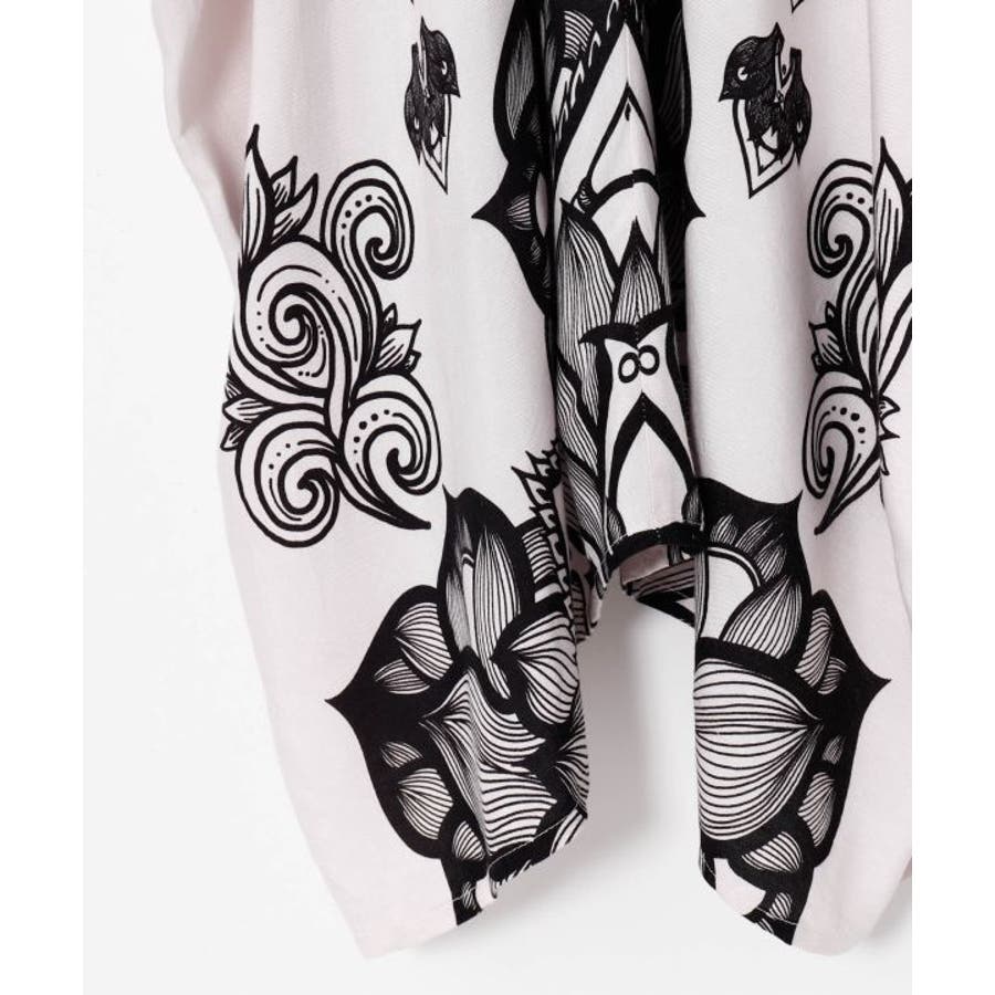 【Amina×VORRUK】タイのアーティストVORRUKとのコラボ。力強いロータスの絵を単色のプリントで落とし込んだ変形のワンピース。柔らかくて涼しいレーヨン素材で着心地抜群。単色カラーリングで他アイテムとも合わせやすい。ビジューのアクセントとVネックで首回りがすっきり見える所もポイント。