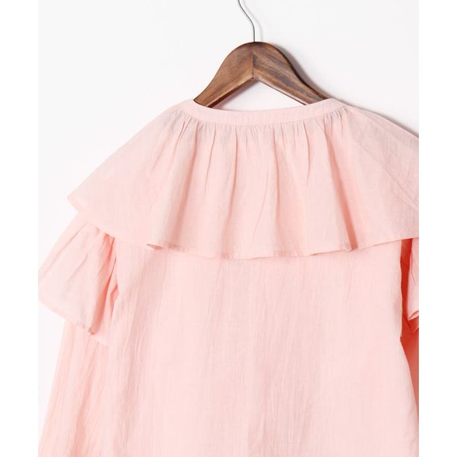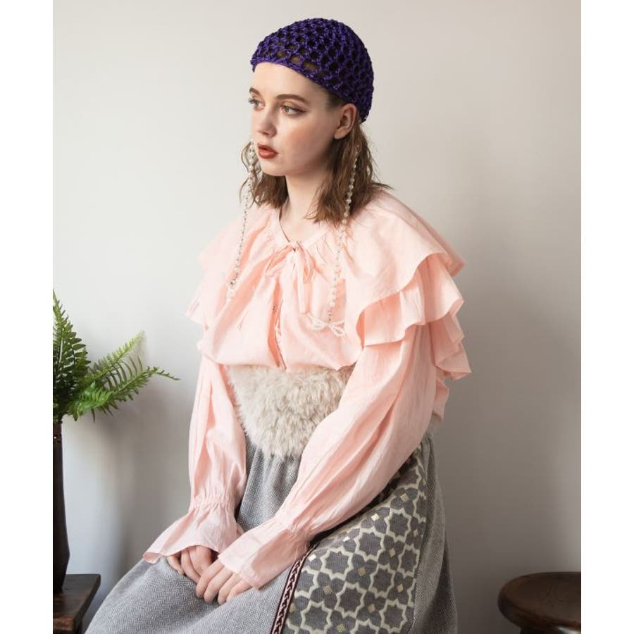 やわらかで肌触りのいいインド綿のブラウス。短丈・薄地なので、重ね着に最適です。取り外し可能な襟付きの2WAY仕様。ボリュームのある付け襟と、袖のフリルがコーディネートのポイントに。明るめのカラーがコーディネートを引き立てます。
