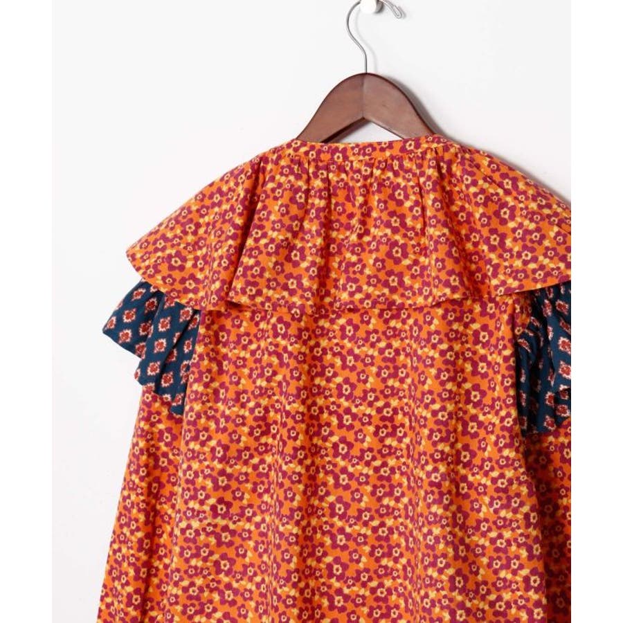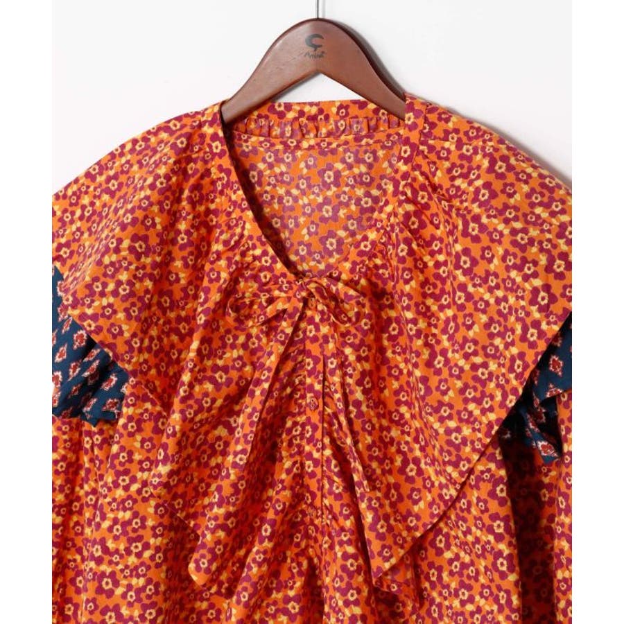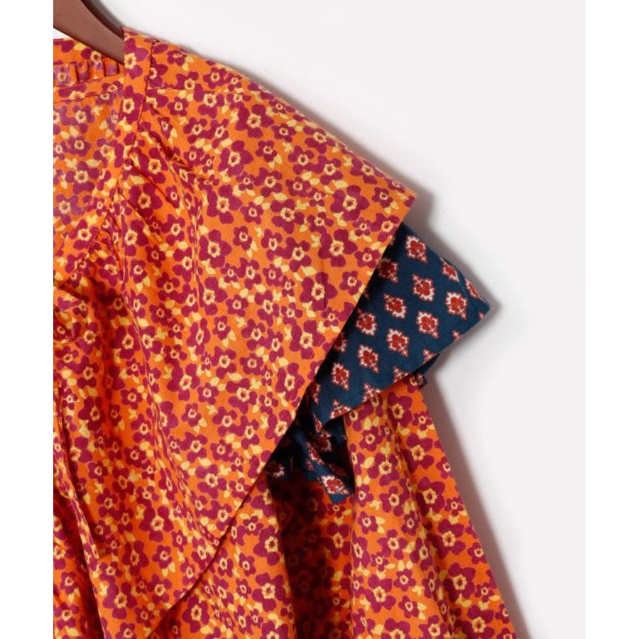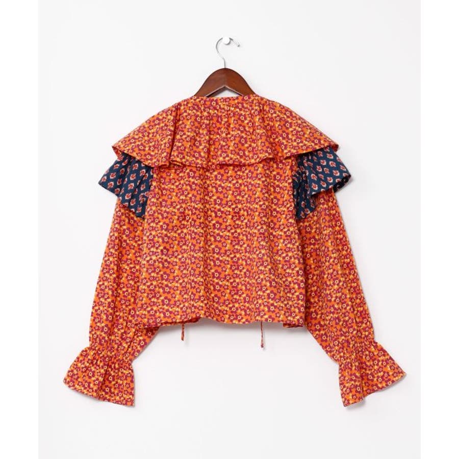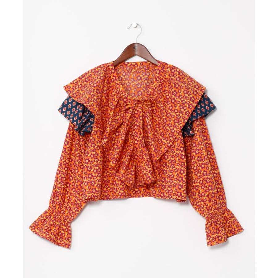 レトロポップな花柄プリントが魅力的な、シーズン問わず着ることができるトップス。しっかりとしたやわらかなコットン素材で、取り外し可能な襟付きの2WAY仕様。ボリュームのある付け襟と袖のフリルが、顔周りを華やかにみせてくれます。