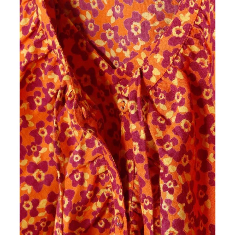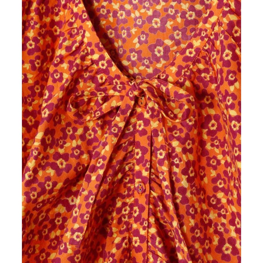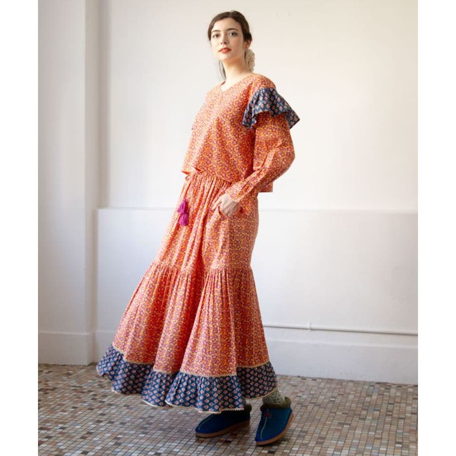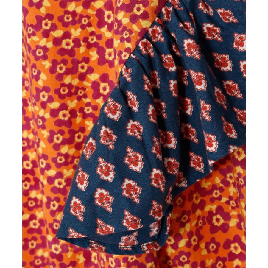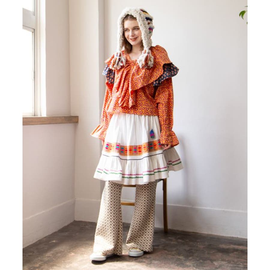 レトロポップな花柄プリントが魅力的な、シーズン問わず着ることができるトップス。しっかりとしたやわらかなコットン素材で、取り外し可能な襟付きの2WAY仕様。ボリュームのある付け襟と袖のフリルが、顔周りを華やかにみせてくれます。