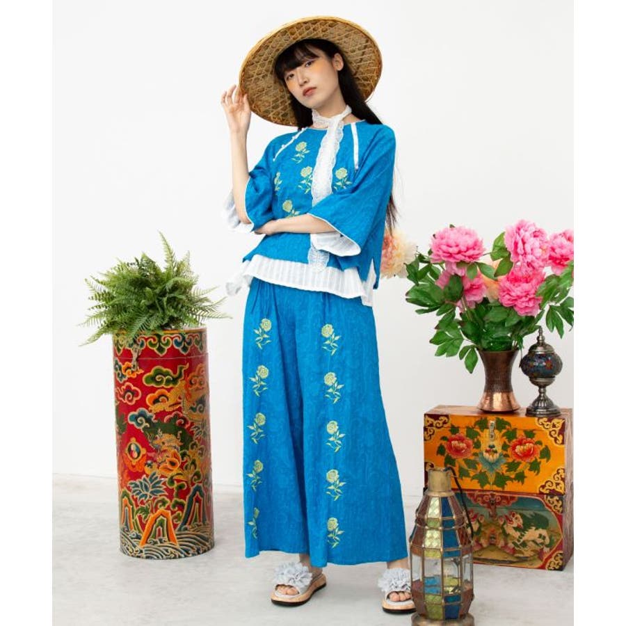 【チャイハネ】ペティナ刺繍ワイドフレアパンツ