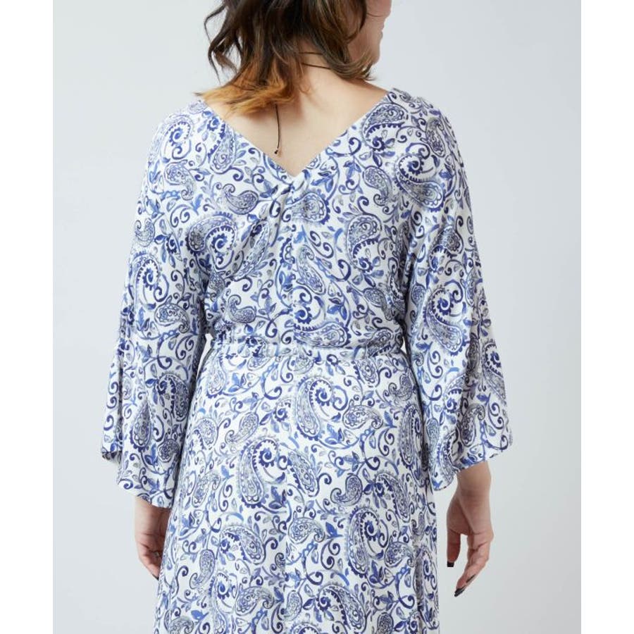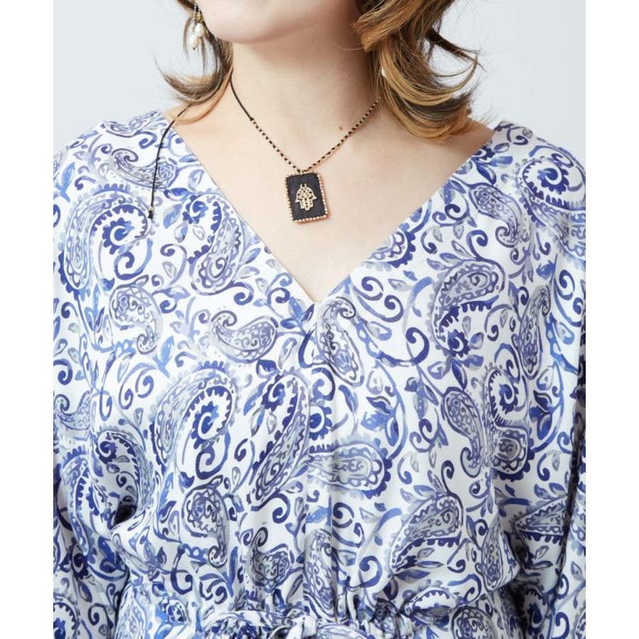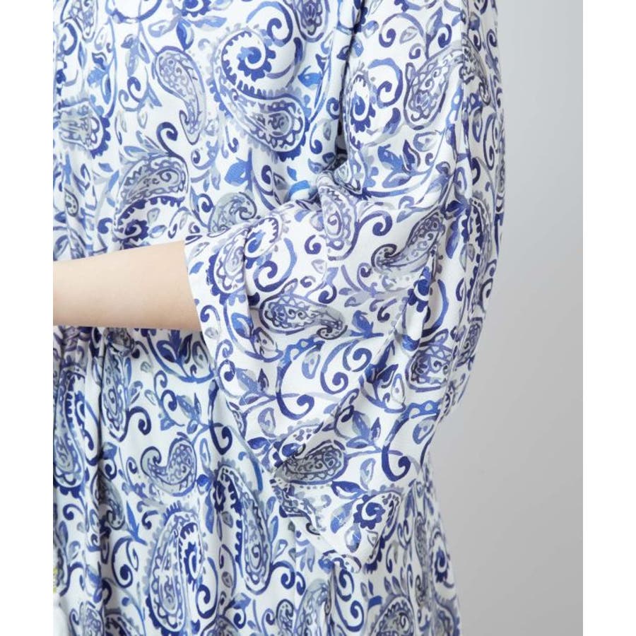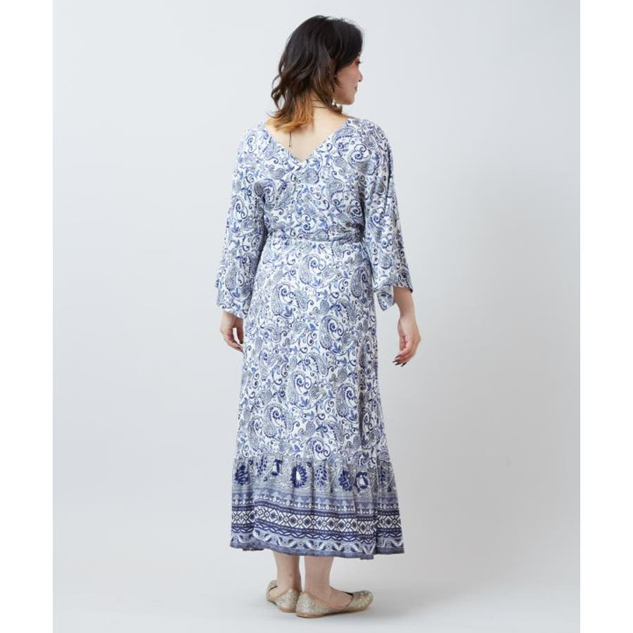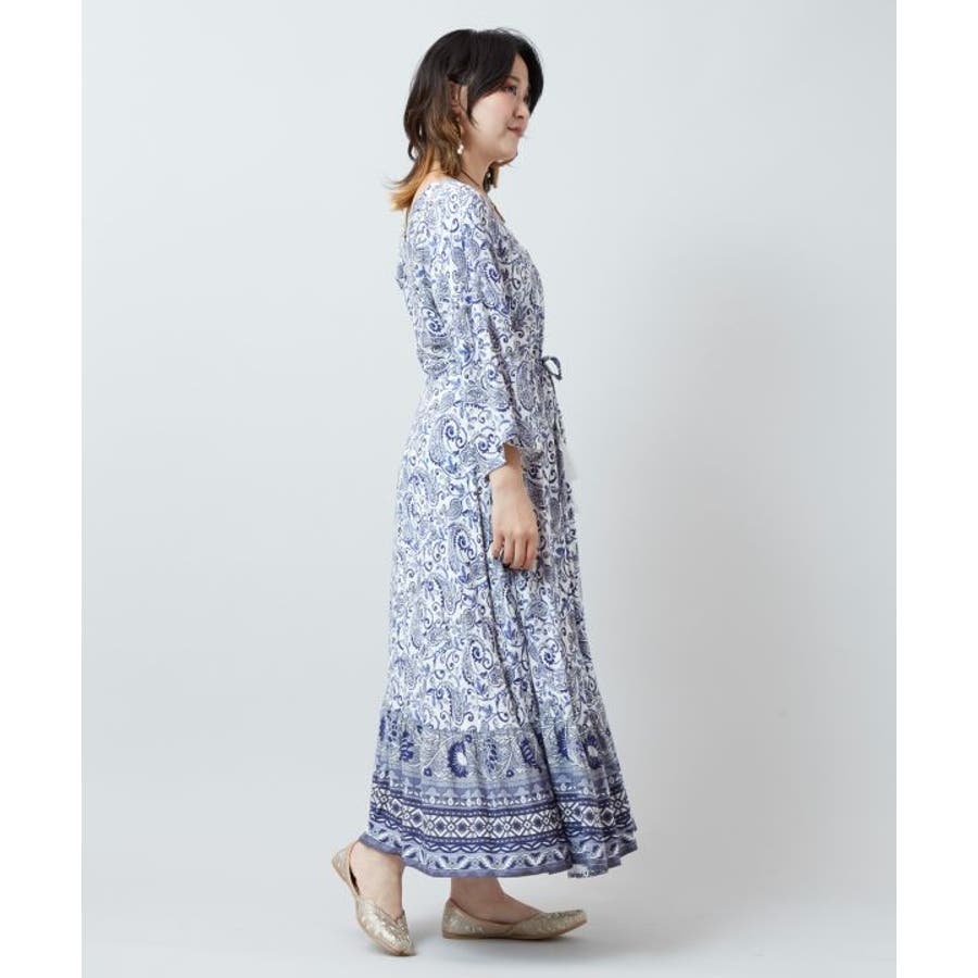 ゆったりと広がるフレアシルエットが美しいワンピース。繊細なペイズリー柄が全体に施され、裾にもエスニック感溢れる模様がプリントされています。ウエストの紐とタッセルがアクセントになり、シルエットを変えることで着こなしの幅も広がります。軽やかな素材感で普段使いはもちろん、旅やおでかけにもおすすめです。