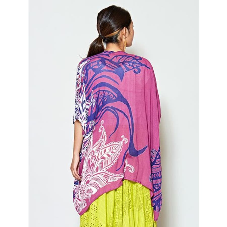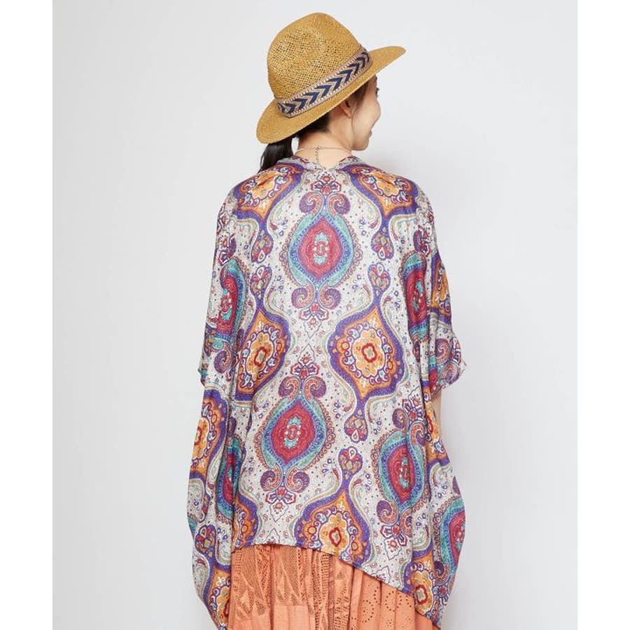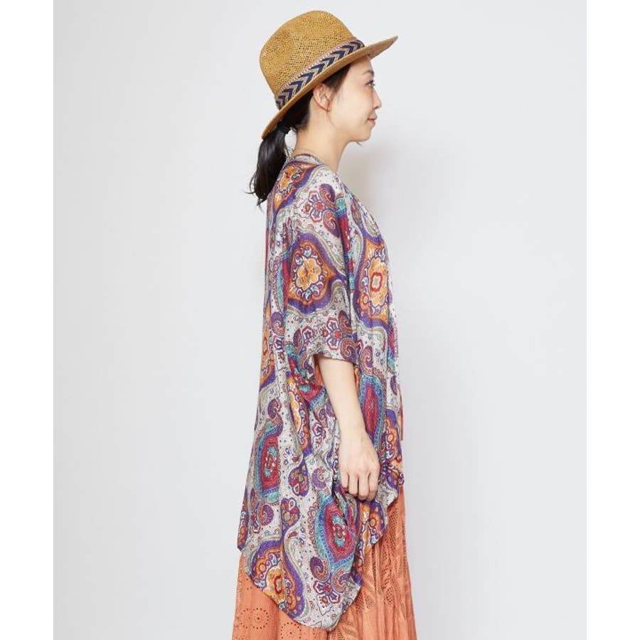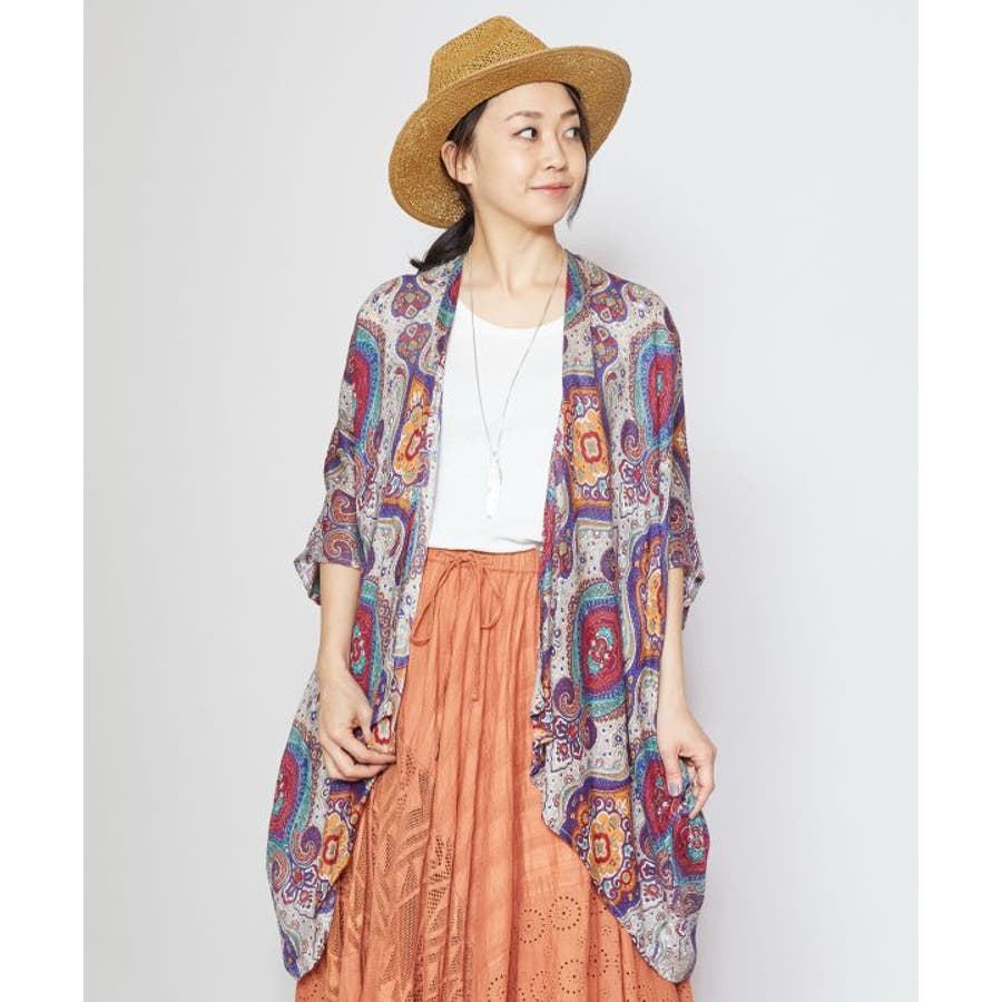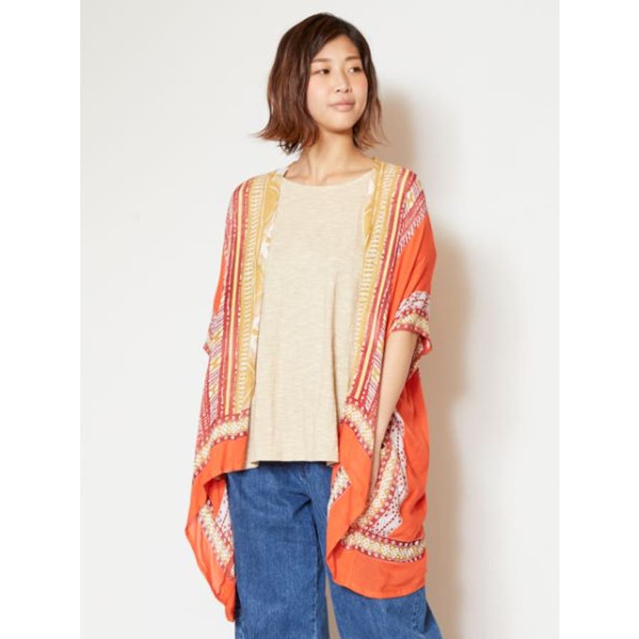 エスニックテキスタイルをモチーフにしたオリジナルデザイン。羽織るだけで華やかさを増す、スタイリングに活躍するカーディガンです。