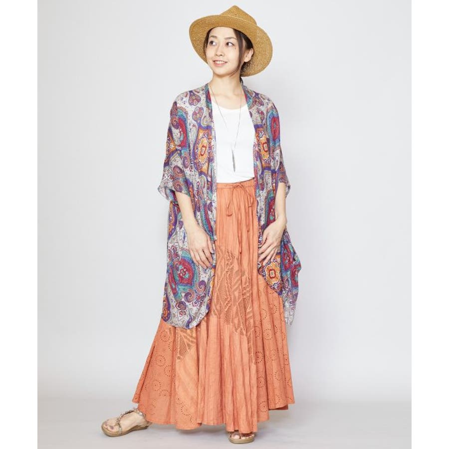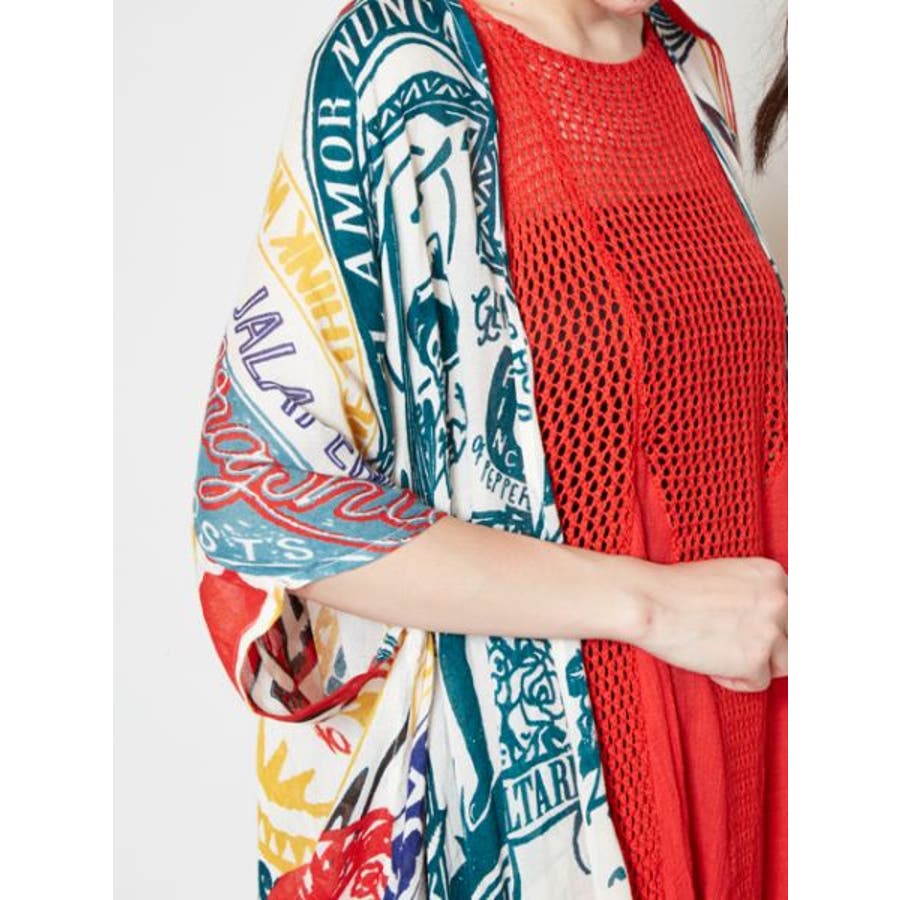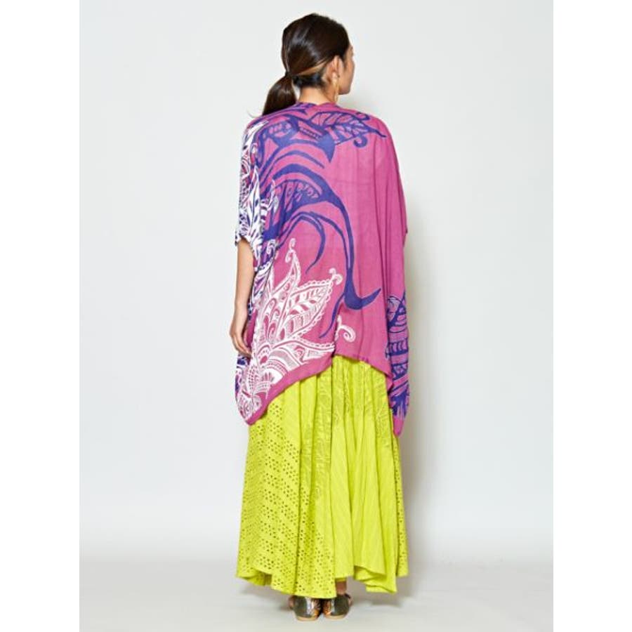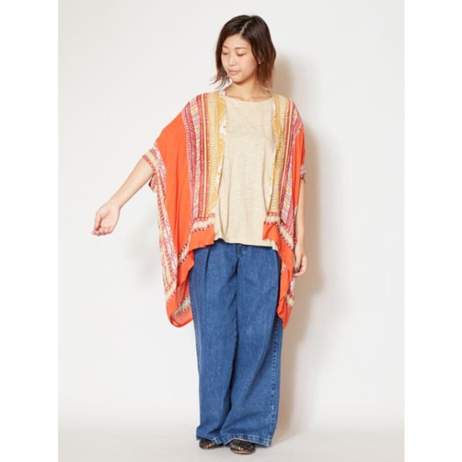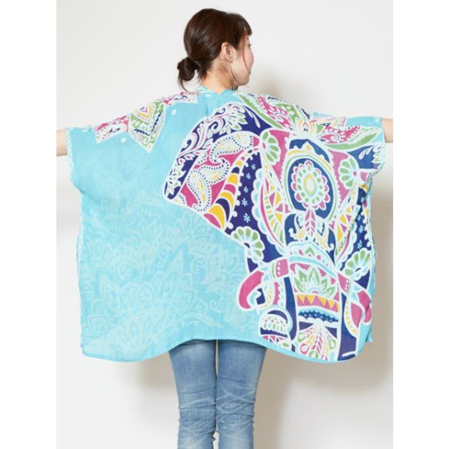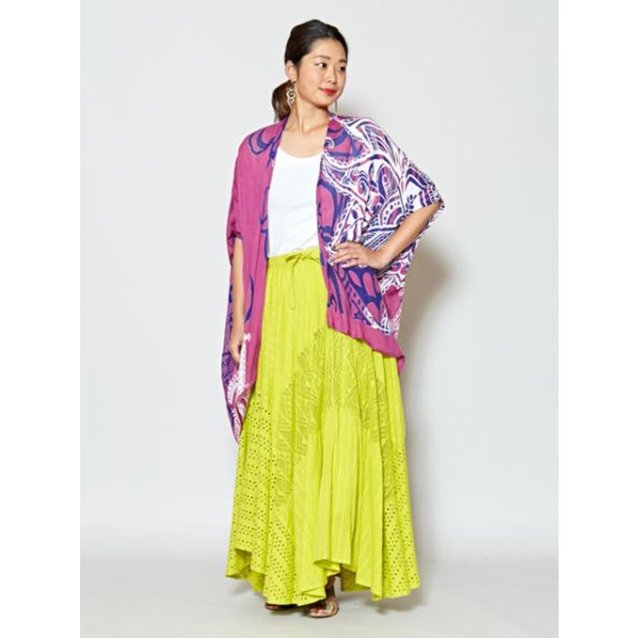エスニックテキスタイルをモチーフにしたオリジナルデザイン。羽織るだけで華やかさを増す、スタイリングに活躍するカーディガンです。