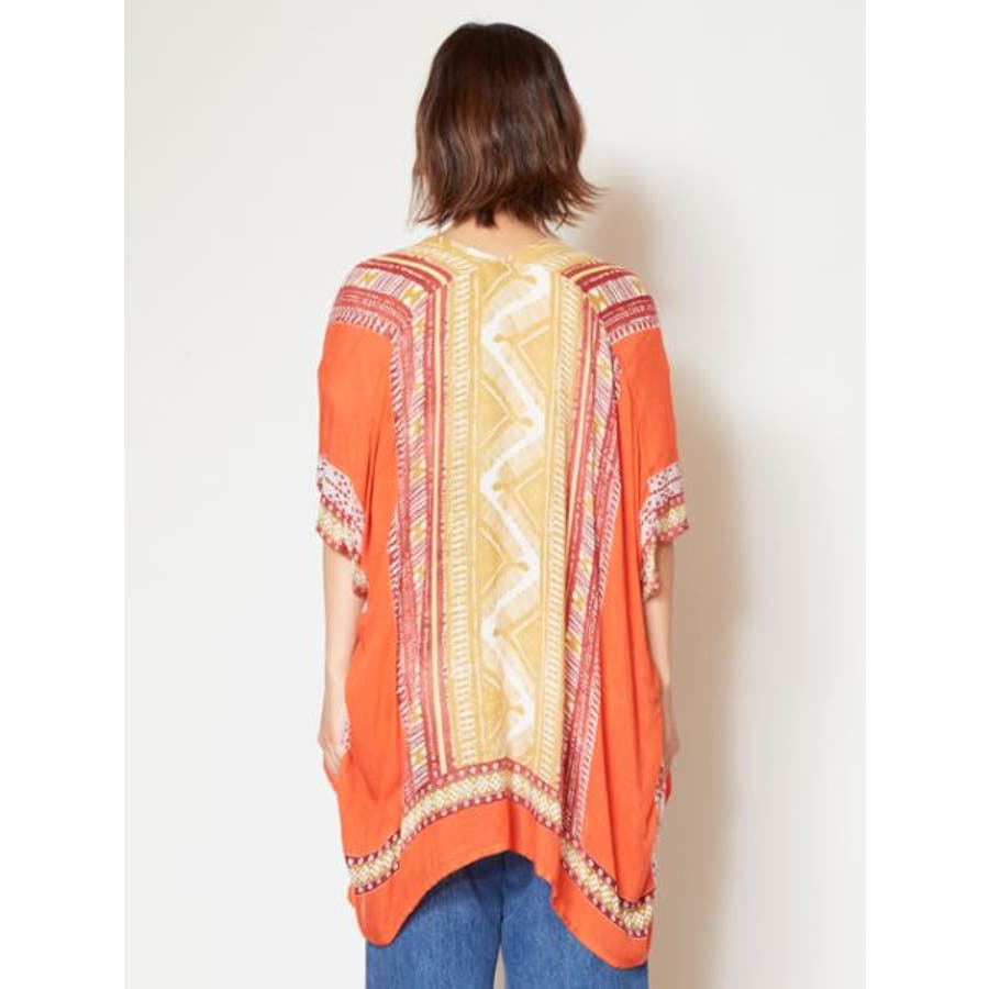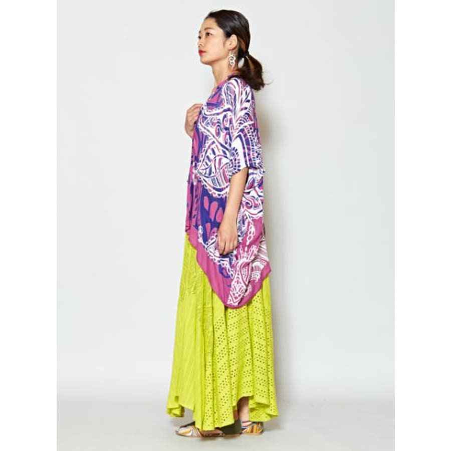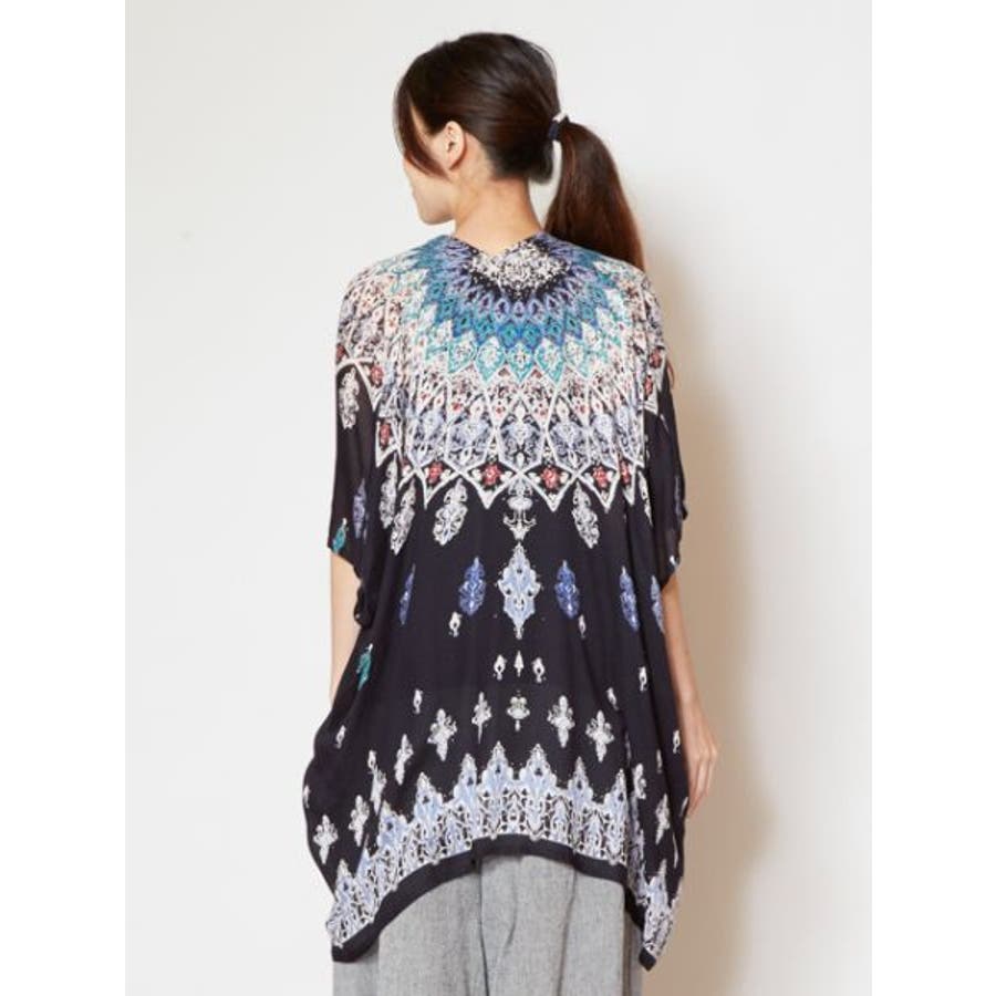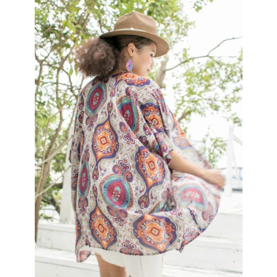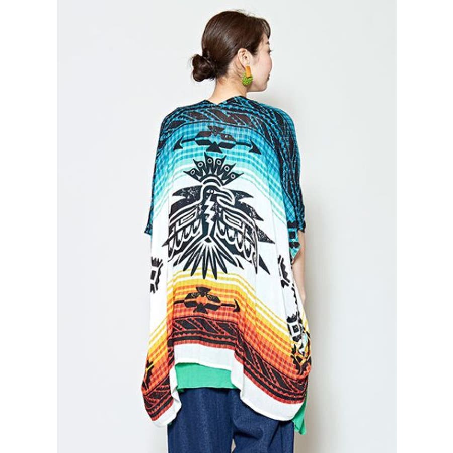 エスニックテキスタイルをモチーフにしたオリジナルデザイン。羽織るだけで華やかさを増す、スタイリングに活躍するカーディガンです。
