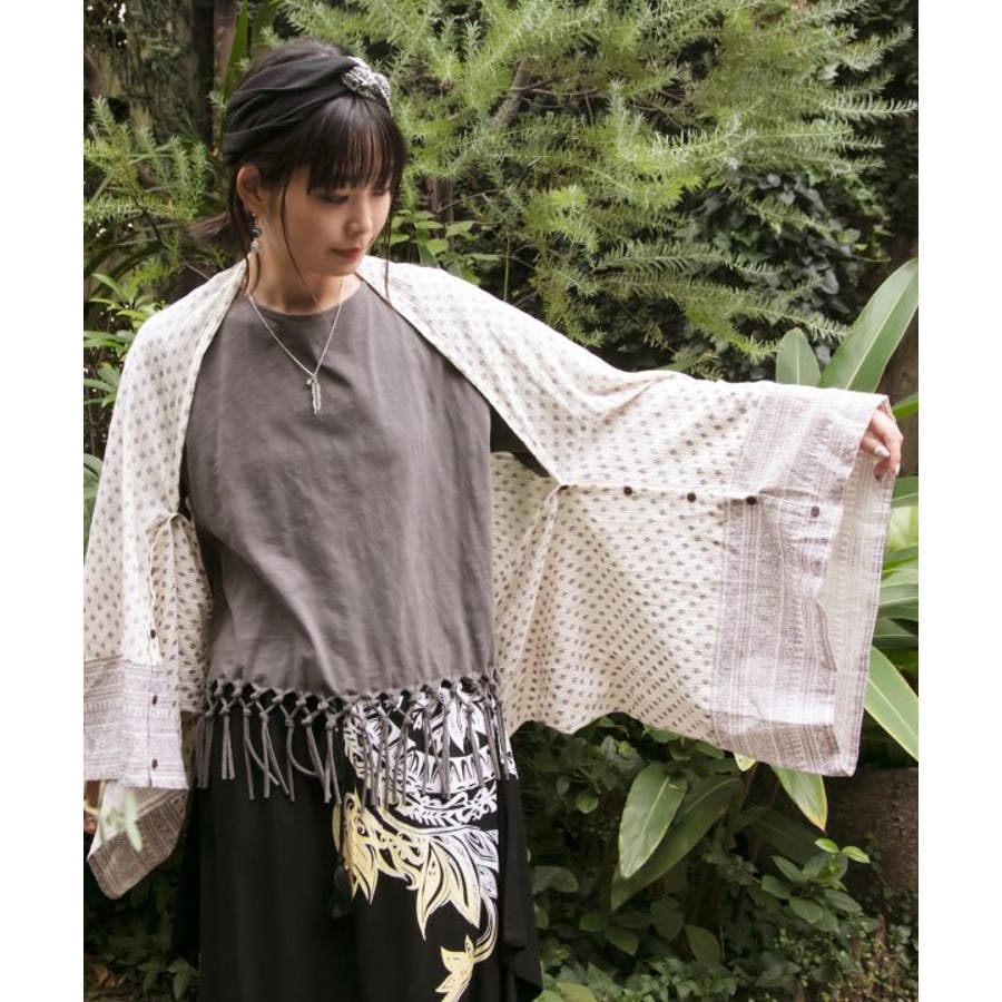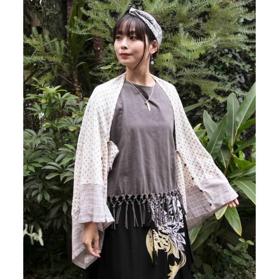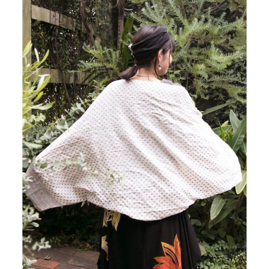 あなたらしく、自由に纏う。キラリと輝く箔プリントが印象的。インドのサリーのような鮮やかな色合いの魅力に心惹かれる。ショールとして纏うのはもちろん、ストールやカーディガンとしても使えるWAY仕様。あなたらしく自由に纏って、日常に彩りを。