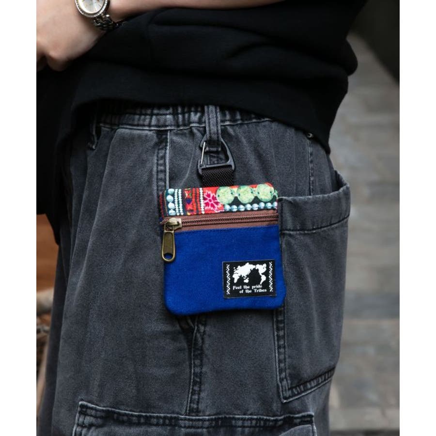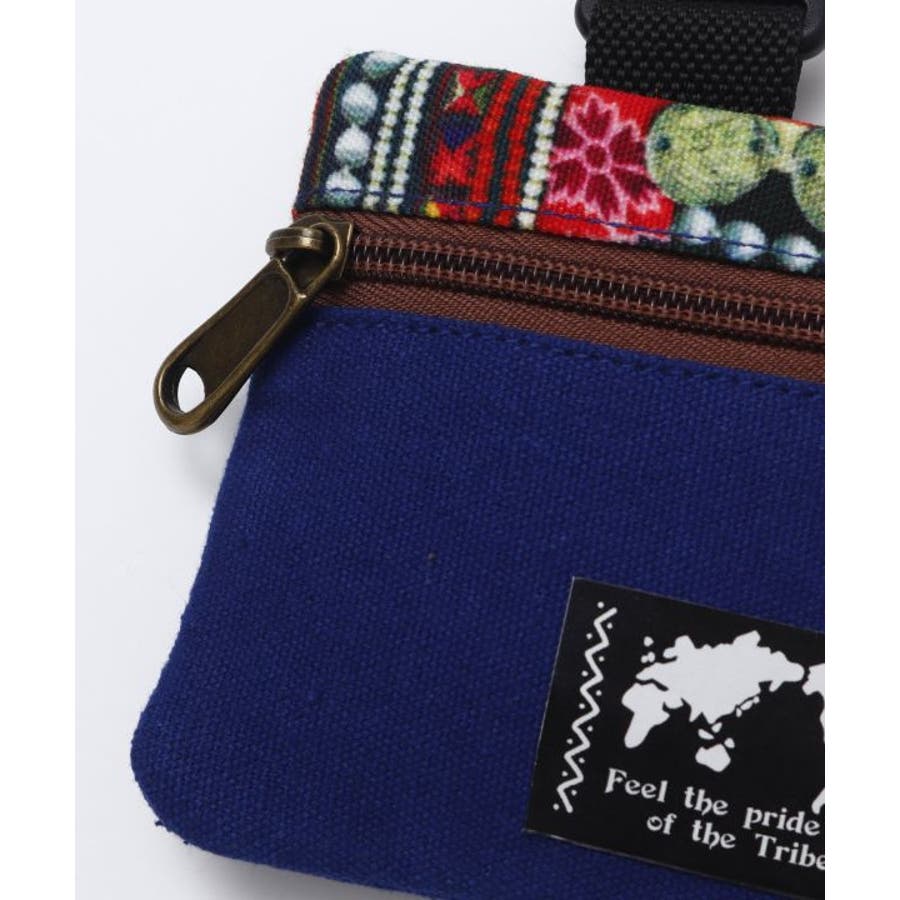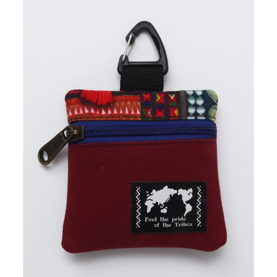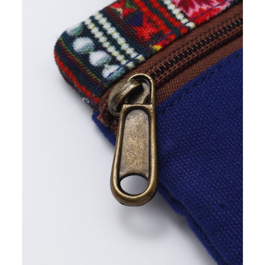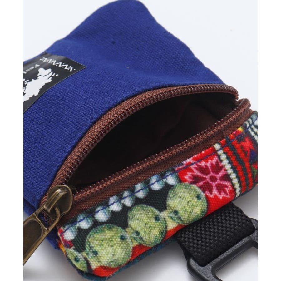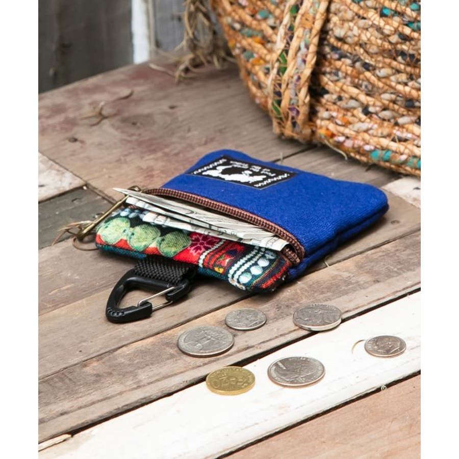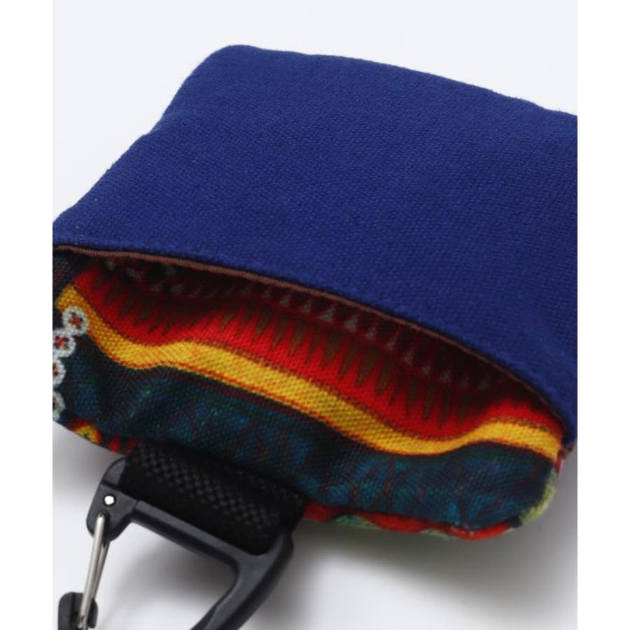 世界各地の伝統柄が施されているカラビナ付きのケース。ファスナーを開けると二層の仕切りになっており、ちょっとしたコインケースとしても使用可能。外側にも鍵が入る大きさのポケット付き。タイの山岳民族、アカ族の伝統的な刺しゅうをイメージしたデザイン。