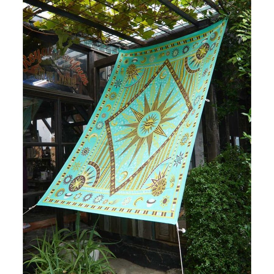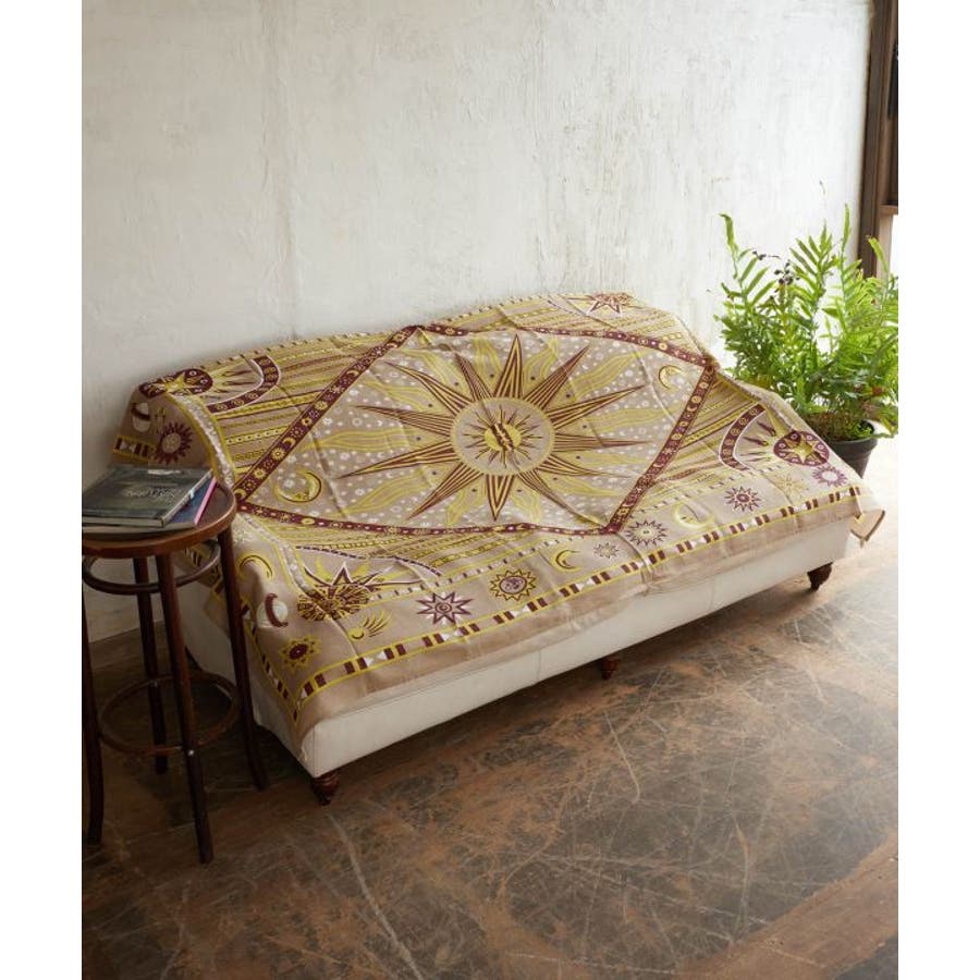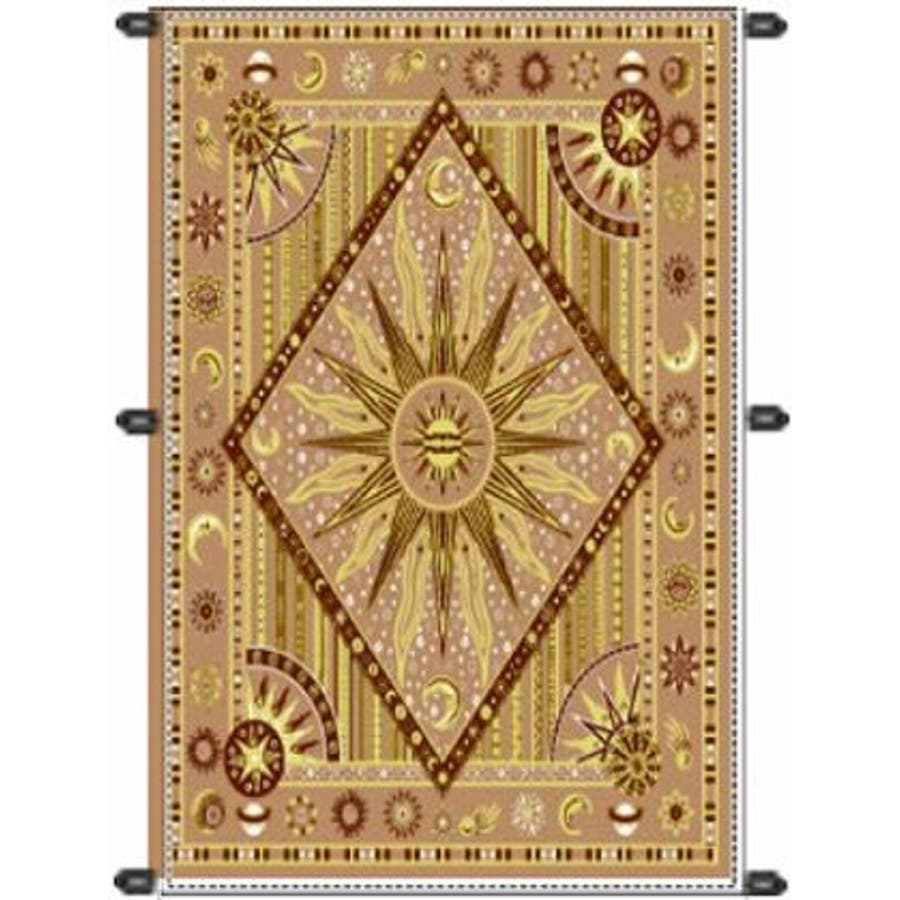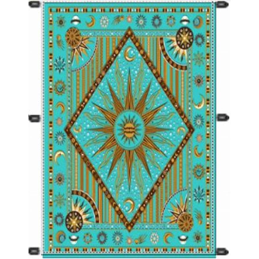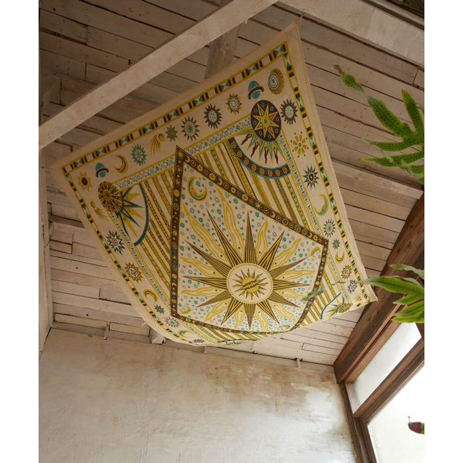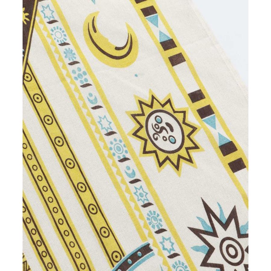 様々な月と太陽がふんだんにでデザインされたマルチクロス。どこかヴィンテージ感のある色合いが魅力。ベッドやソファにはもちろん、お部屋の目隠しやキャンプシーンにもおすすめ。6箇所のループ付きで、タープクロスとして大活躍。