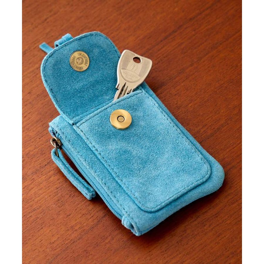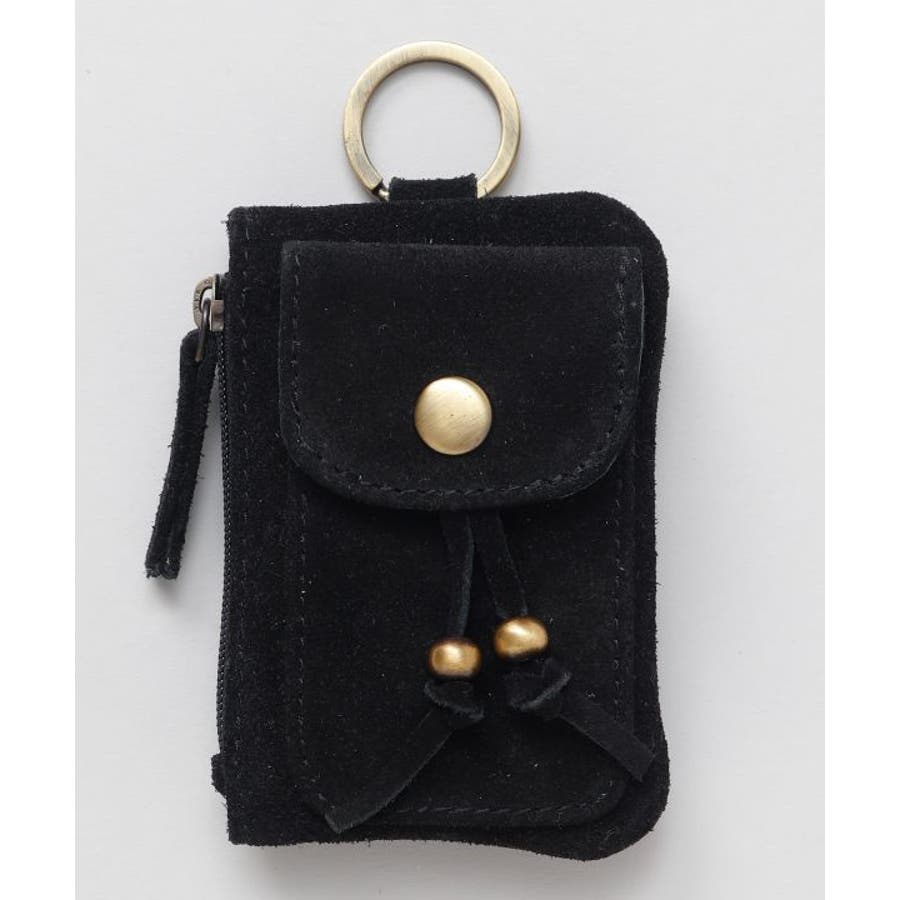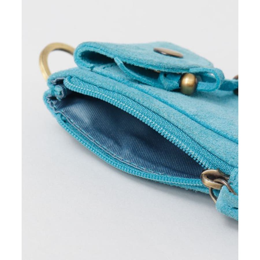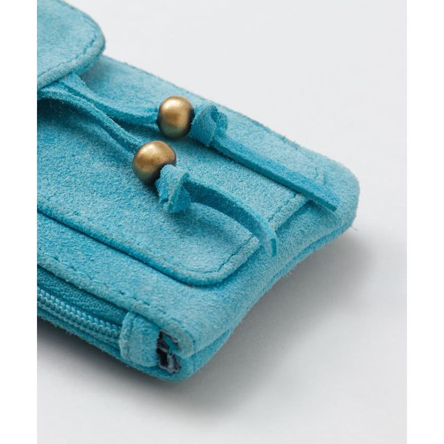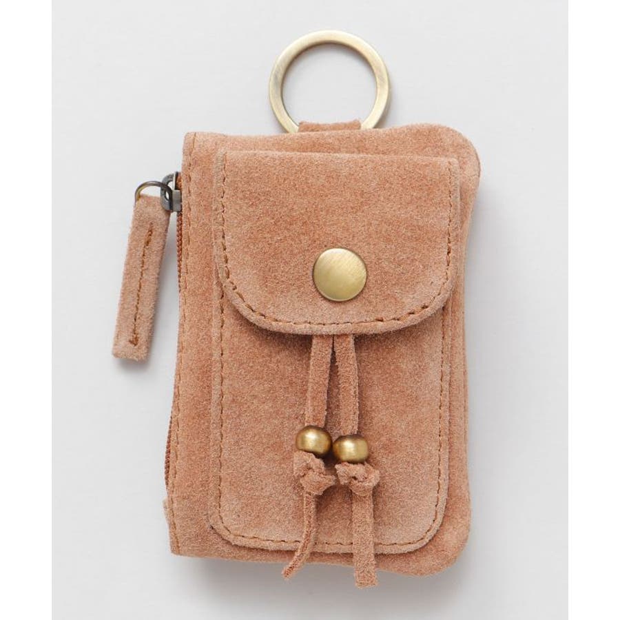 コルカタ地方の牛革スエード素材のポーチ。コンパクトなサイズ感でカードの収納や小銭入れとして大活躍すること間違いなし。リング付きなのでカラビナなどに通して、バッグやスマホストラップに付けて自分流にカスタムをお楽しみください。