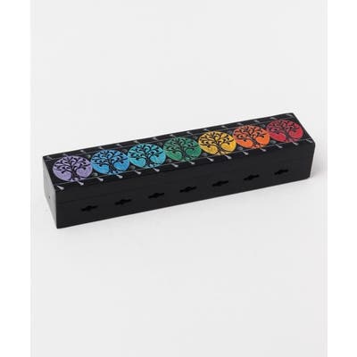 ボックスタイプのお香立て。フタを空けるとサイドに穴が空いているので、スティック香を差して使えます。お香がボックスの中に納まるので灰が落ちる心配もありません。