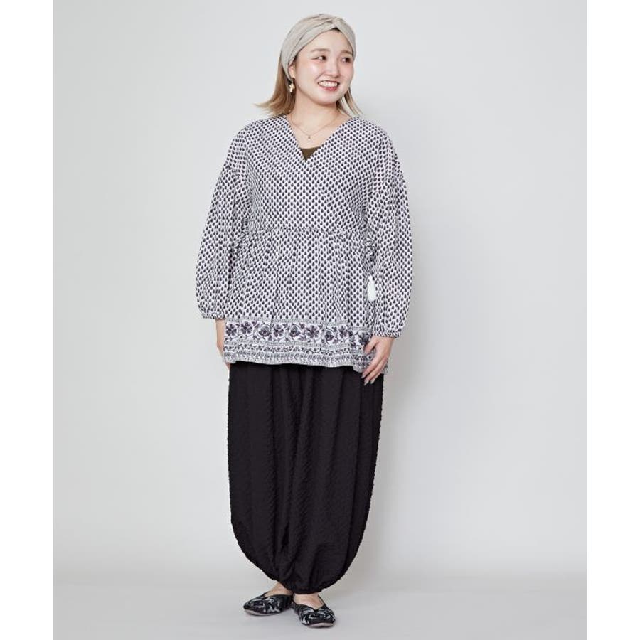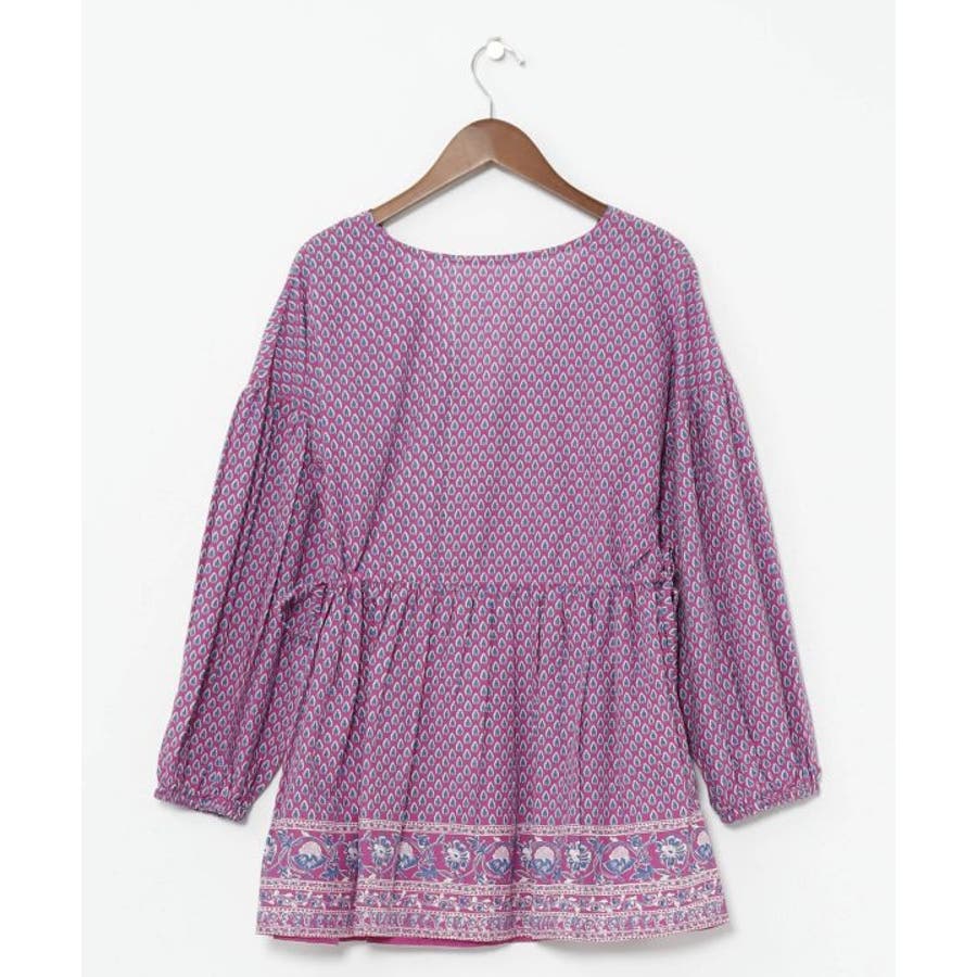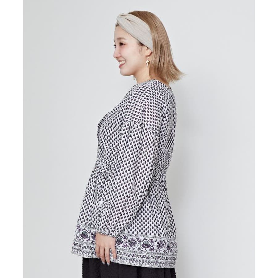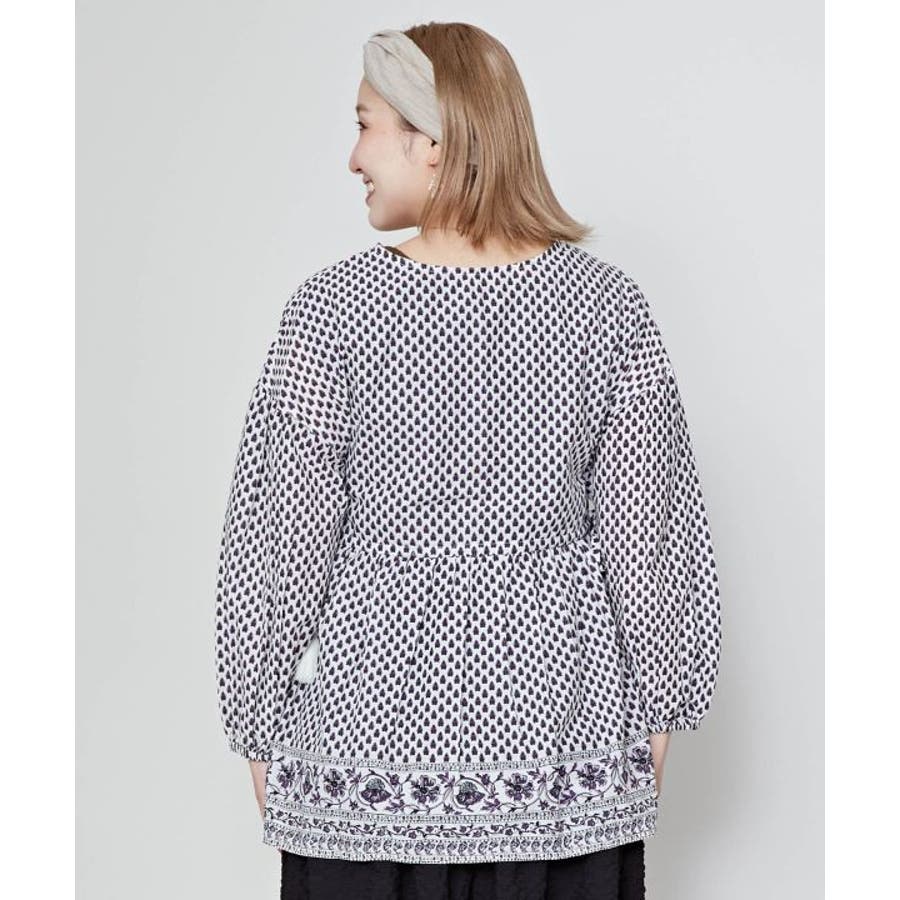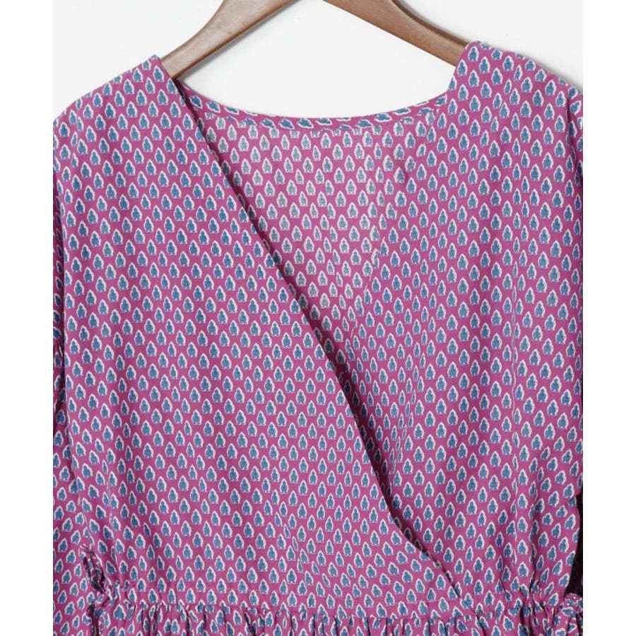 繊細なブロックプリントの柄をモチーフにしたトップス。ふんわりと軽やかに着られる綿素材で、涼やかな一枚です。サイドの紐でシルエットを調整できるので、ちょっとしたアレンジにも。
