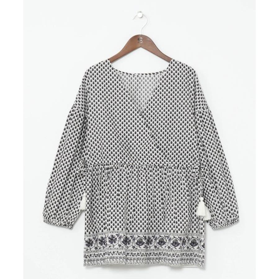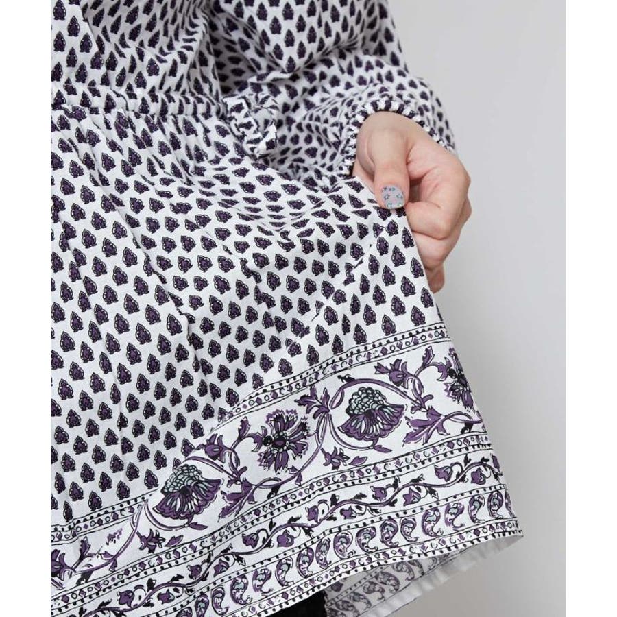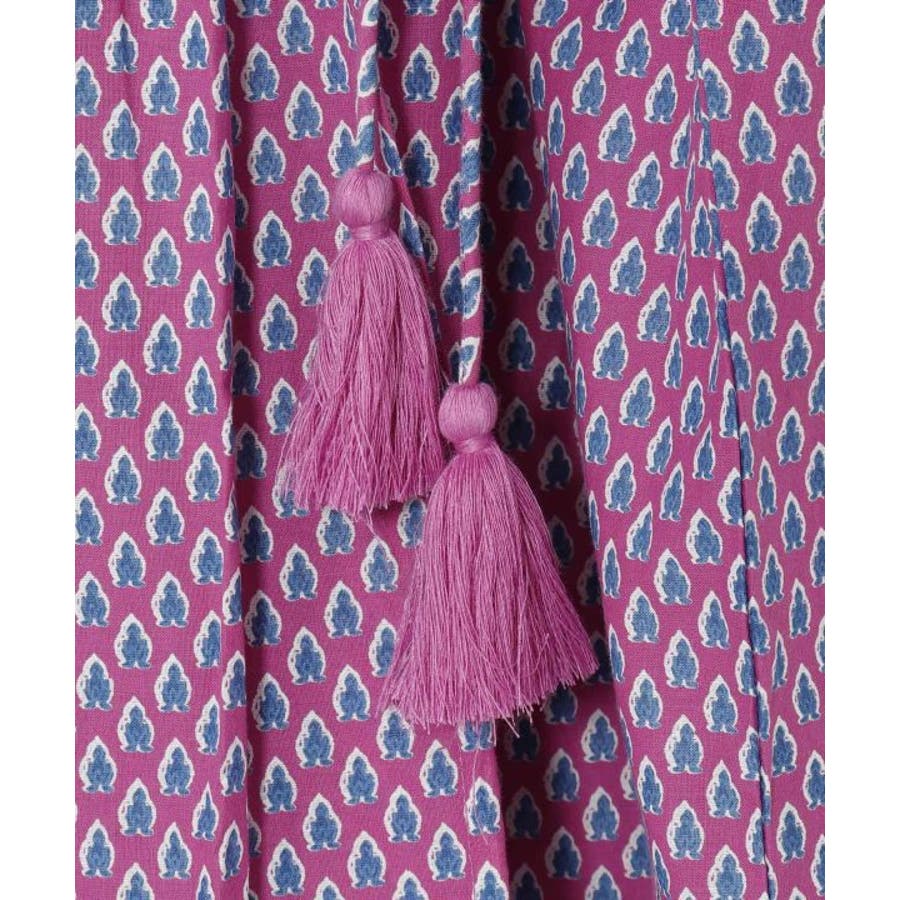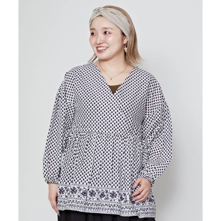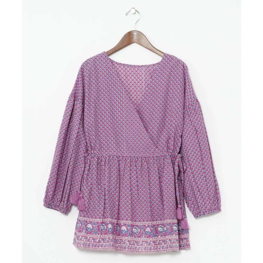 繊細なブロックプリントの柄をモチーフにしたトップス。ふんわりと軽やかに着られる綿素材で、涼やかな一枚です。サイドの紐でシルエットを調整できるので、ちょっとしたアレンジにも。