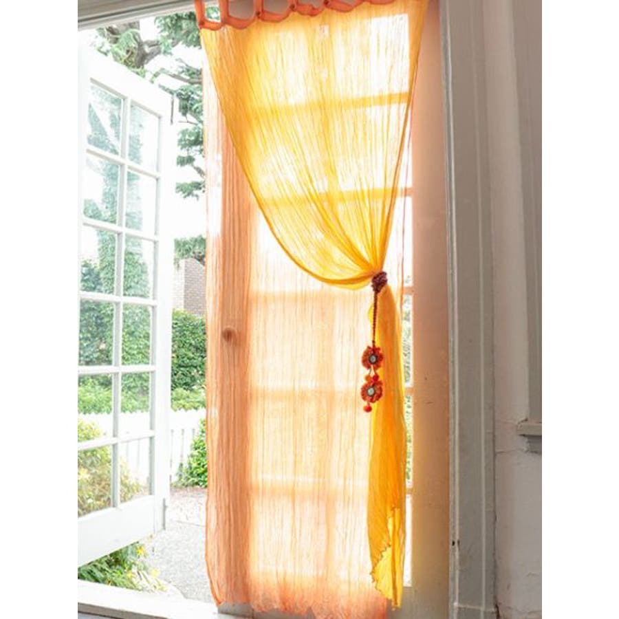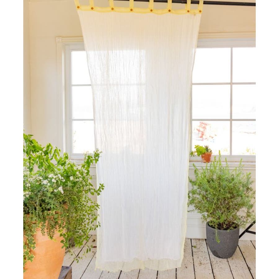 肌触りが柔らかく、思わず触ってしまうインド綿のガーゼカーテン。2重のガーゼの組み合わせがふんわり優しい風合いです。真夏の元気な太陽の光も冬の静かな太陽の光も、やさしくお部屋に取り入れ、ほわんとした空気にしてくれます。2重だから留め方次第でいろいろアレンジし