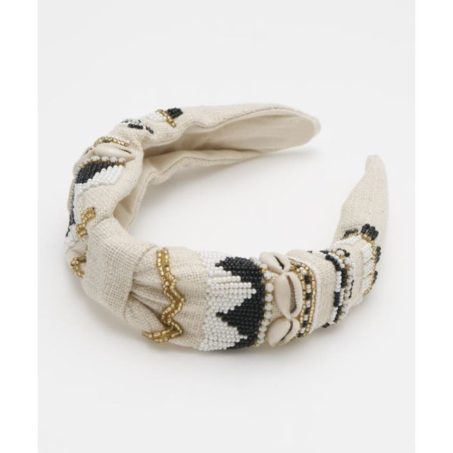 煌びやかな装飾が目を惹く、ビーズと貝殻の刺しゅうが施されたヘアバンド。細かなインド刺しゅうデザインに心奪われます。日常のコーディネートにプラスすることで、パッと華やかな印象に。