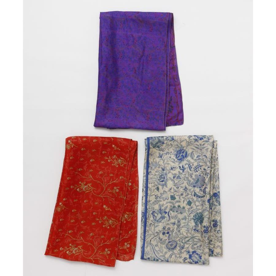 インドの民族衣装、サリーに使用される鮮やかな布をストール。生地は綿素材の為、さらりとした肌触り。一点ものだからこそお気に入りの柄との出会いを楽しめる。※アソートになります。