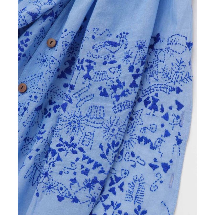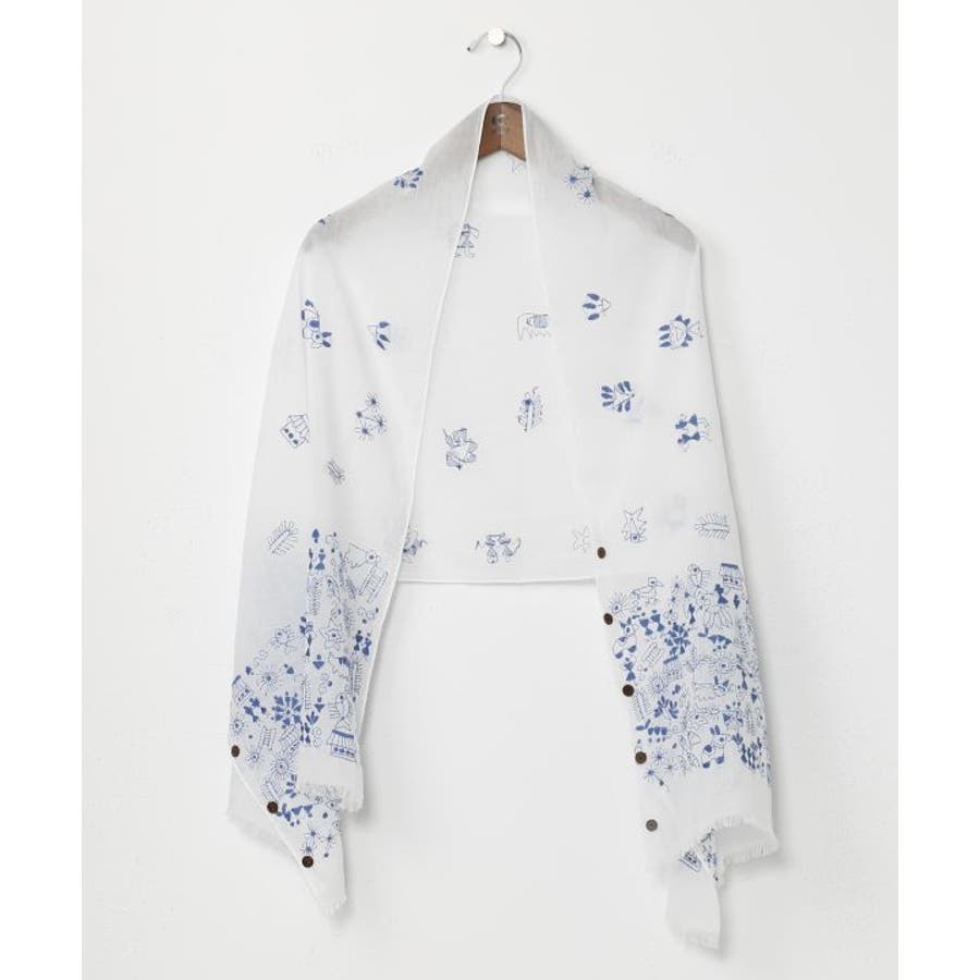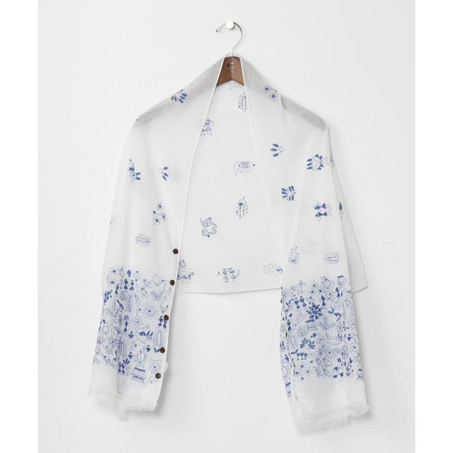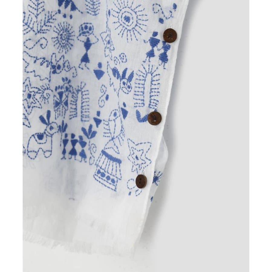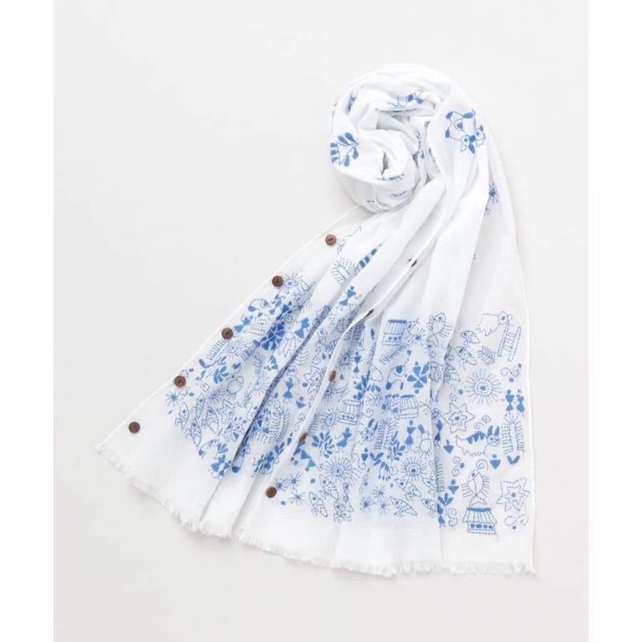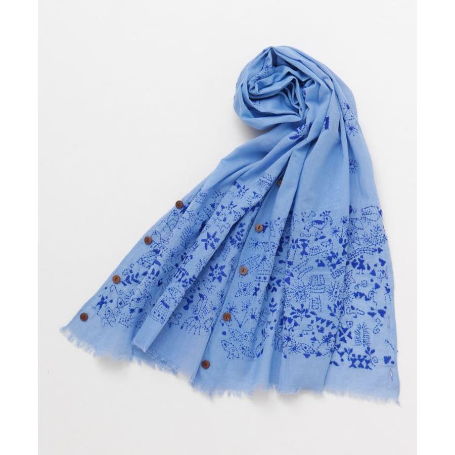 インドの手仕事が伝わるカンタ刺しゅうをあしらったコットン素材のストール。ショールとして纏うのはもちろんボタンを留めてストールやカーディガンとしても使える3WAY仕様。コンパクトに折り畳めて、日差しよけや気温調節など様々なシーンで活躍すること間違いなしの一枚です。