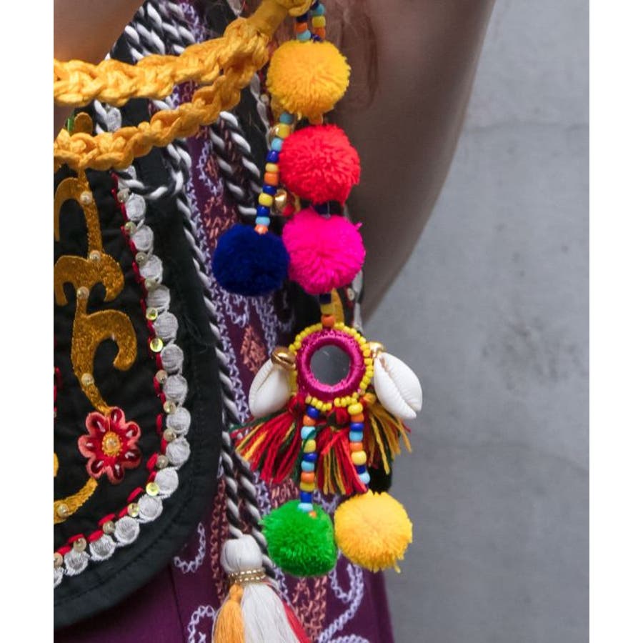 カラフルな素材や、インドならではのミラーチャームを組み合わせて、スマートフォンストラップにしました。付属のカードをお持ちのスマートフォンカバーに挟んで使用してください。