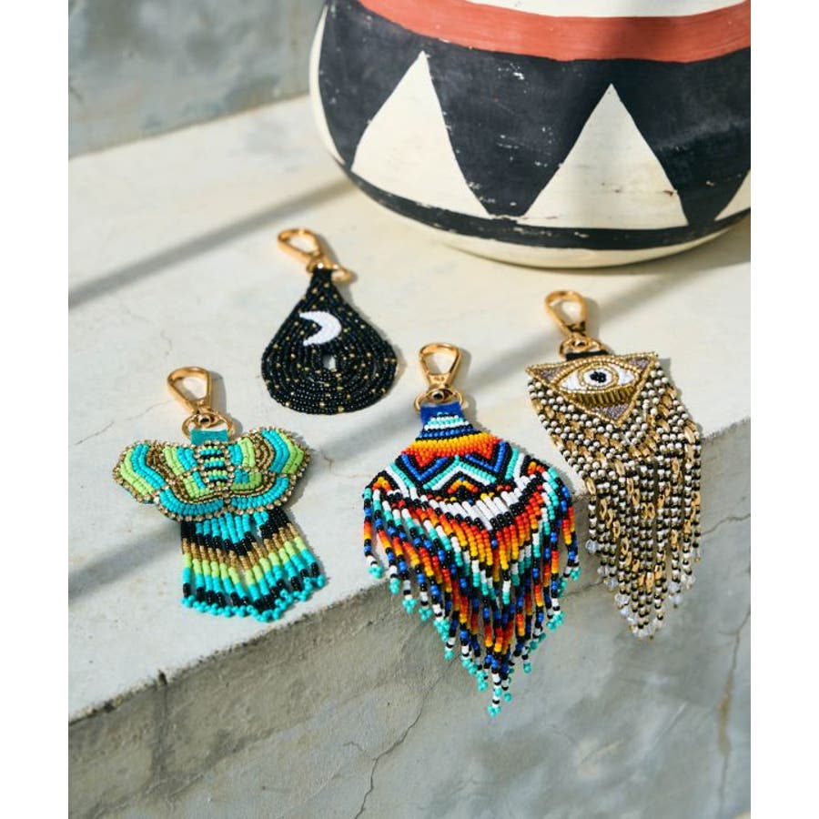 悪夢を払いのけていい夢だけを運んでくれるドリームキャッチャーをモチーフにした、たっぷりビーズのチャーム。バッグに付けたり、スマホに付けたりお部屋に飾ったり。アレンジを楽しんで。