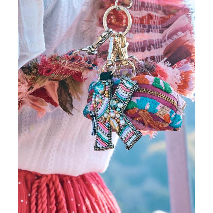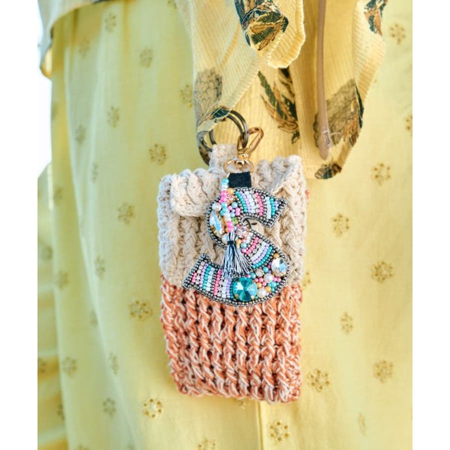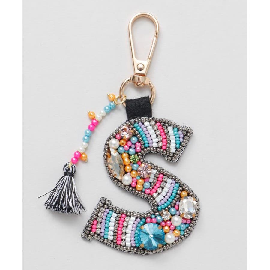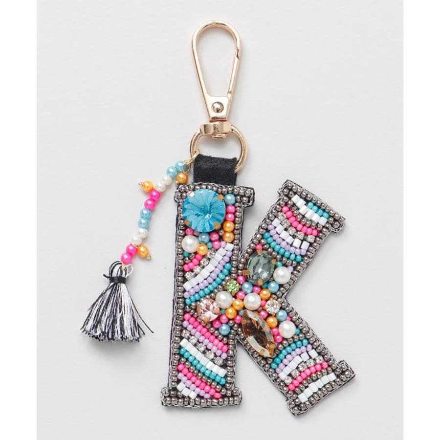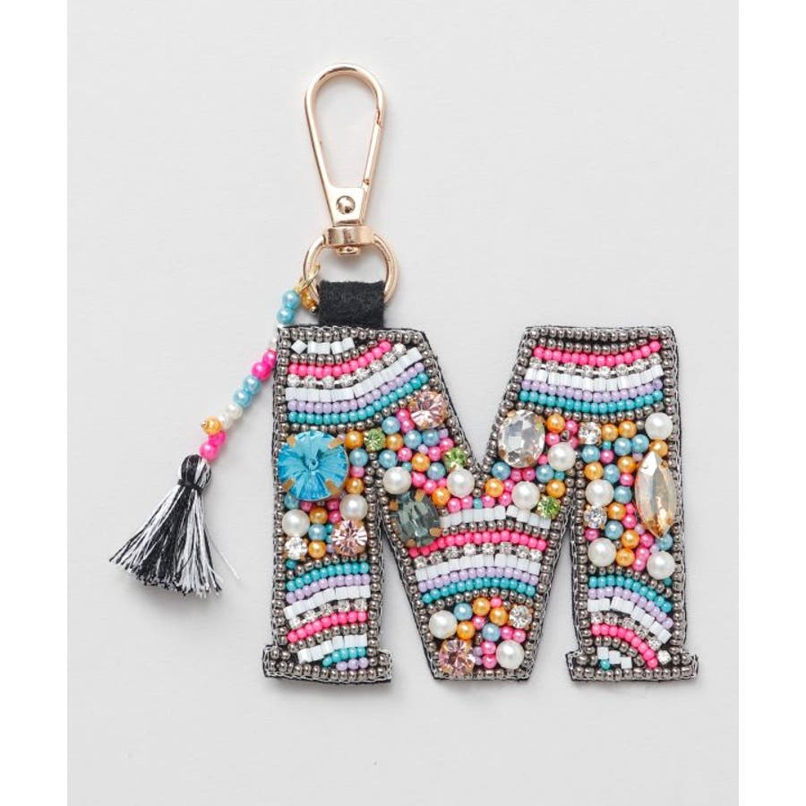 シードビーズやビジューパーツの装飾が可愛いイニシャルチャーム。 フック付きで携帯やバッグなどにもつけられます。ギフトにもおすすめ。