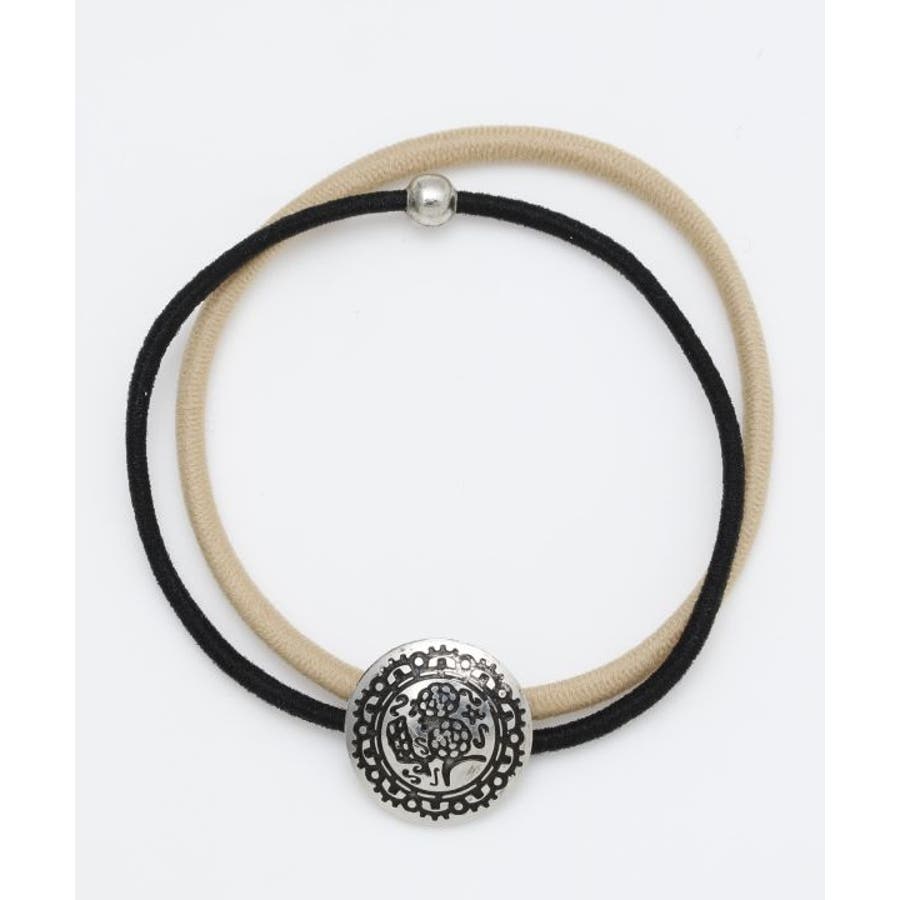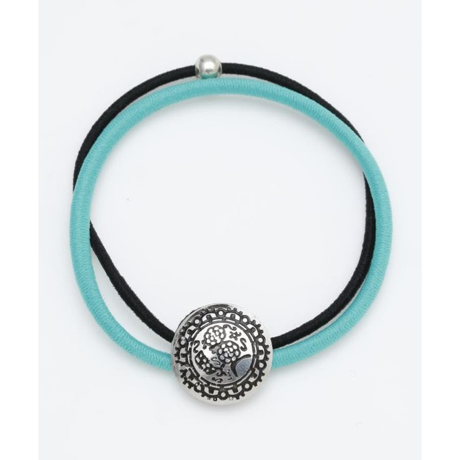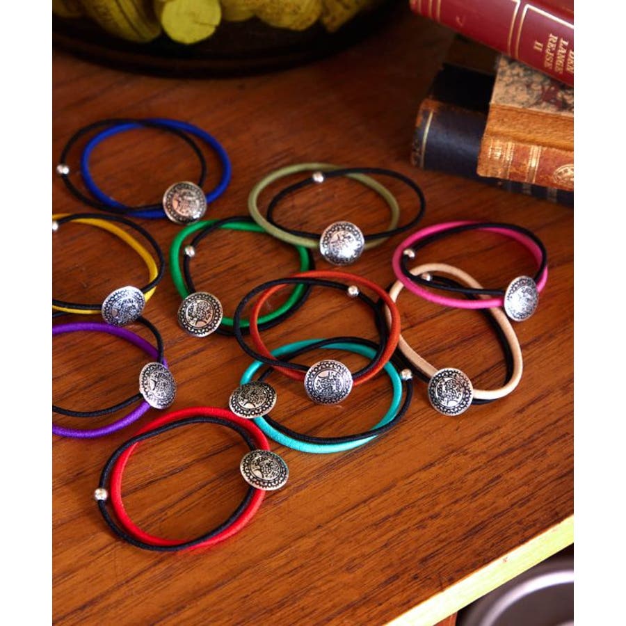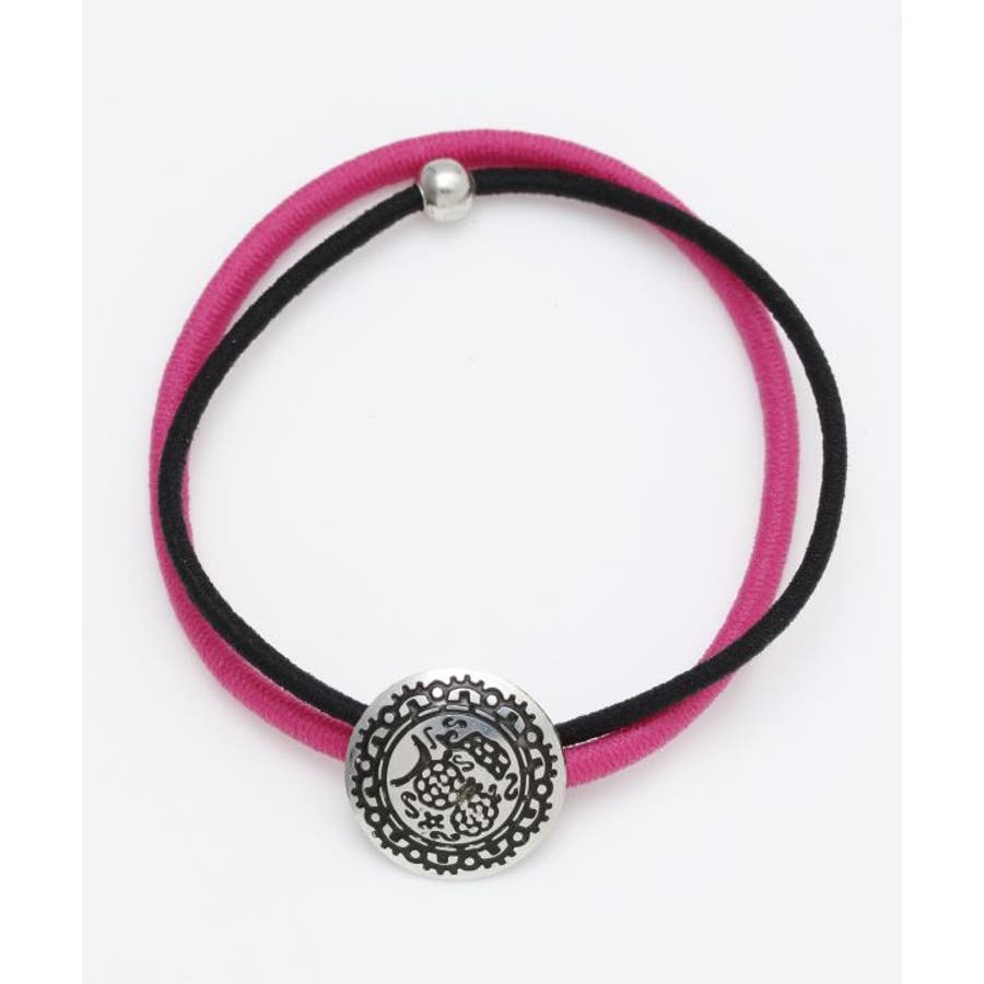 メキシコの死者の日のカラベラをコンチョモチーフにしたヘアゴム。静電気除去効果がありブレスレットとしてもヘアゴムとしても使えるアイテム。2連の重ね付け風になっており、カラー展開が豊富なのも嬉しいポイント。