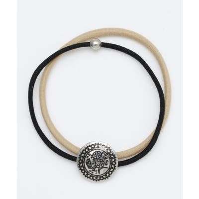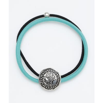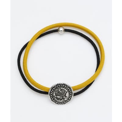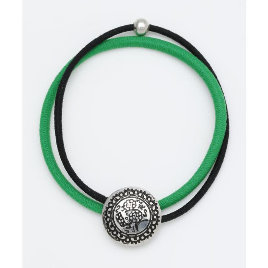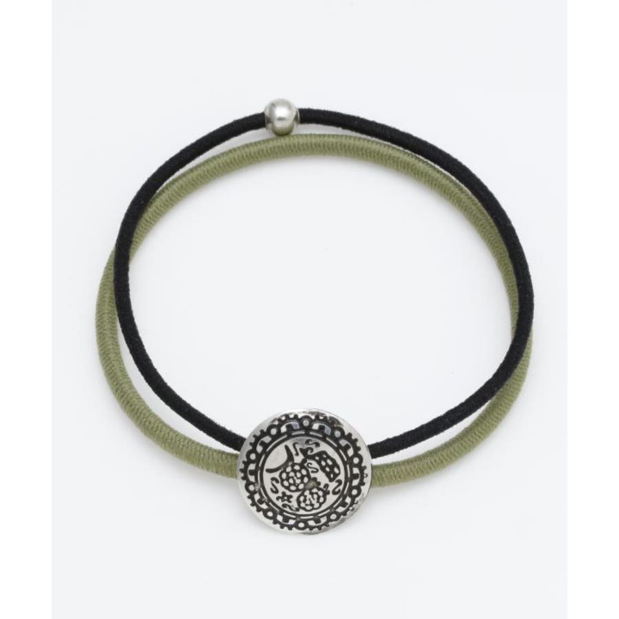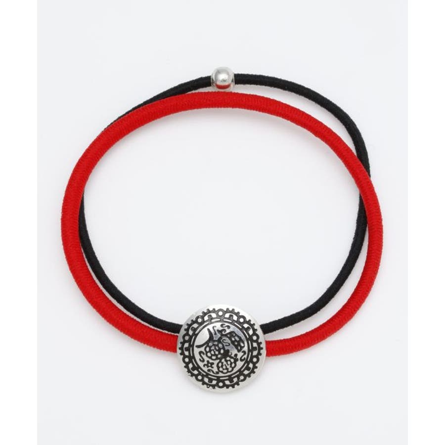 メキシコの死者の日のカラベラをコンチョモチーフにしたヘアゴム。静電気除去効果がありブレスレットとしてもヘアゴムとしても使えるアイテム。2連の重ね付け風になっており、カラー展開が豊富なのも嬉しいポイント。