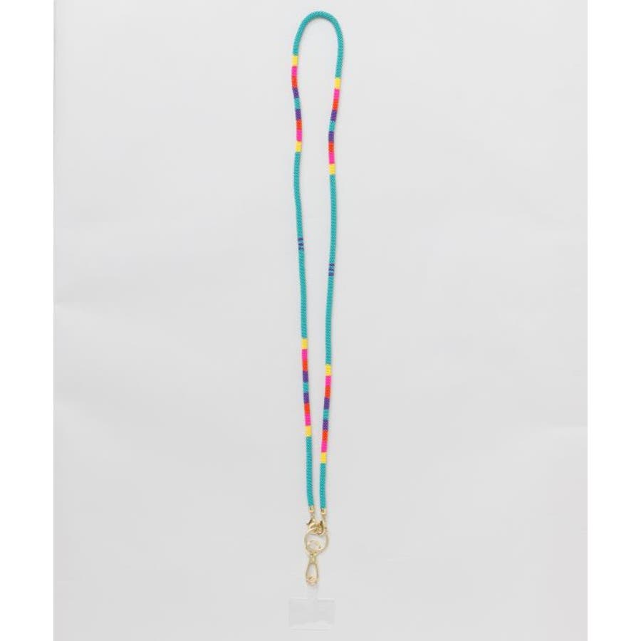 ビーズでカラフルに仕上げたスマホストラップ。クリアストラップシート付き。お手持ちのスマートフォンを自分好みにカスタマイズして持ち運びが可能。 肩掛けできるサイズです。